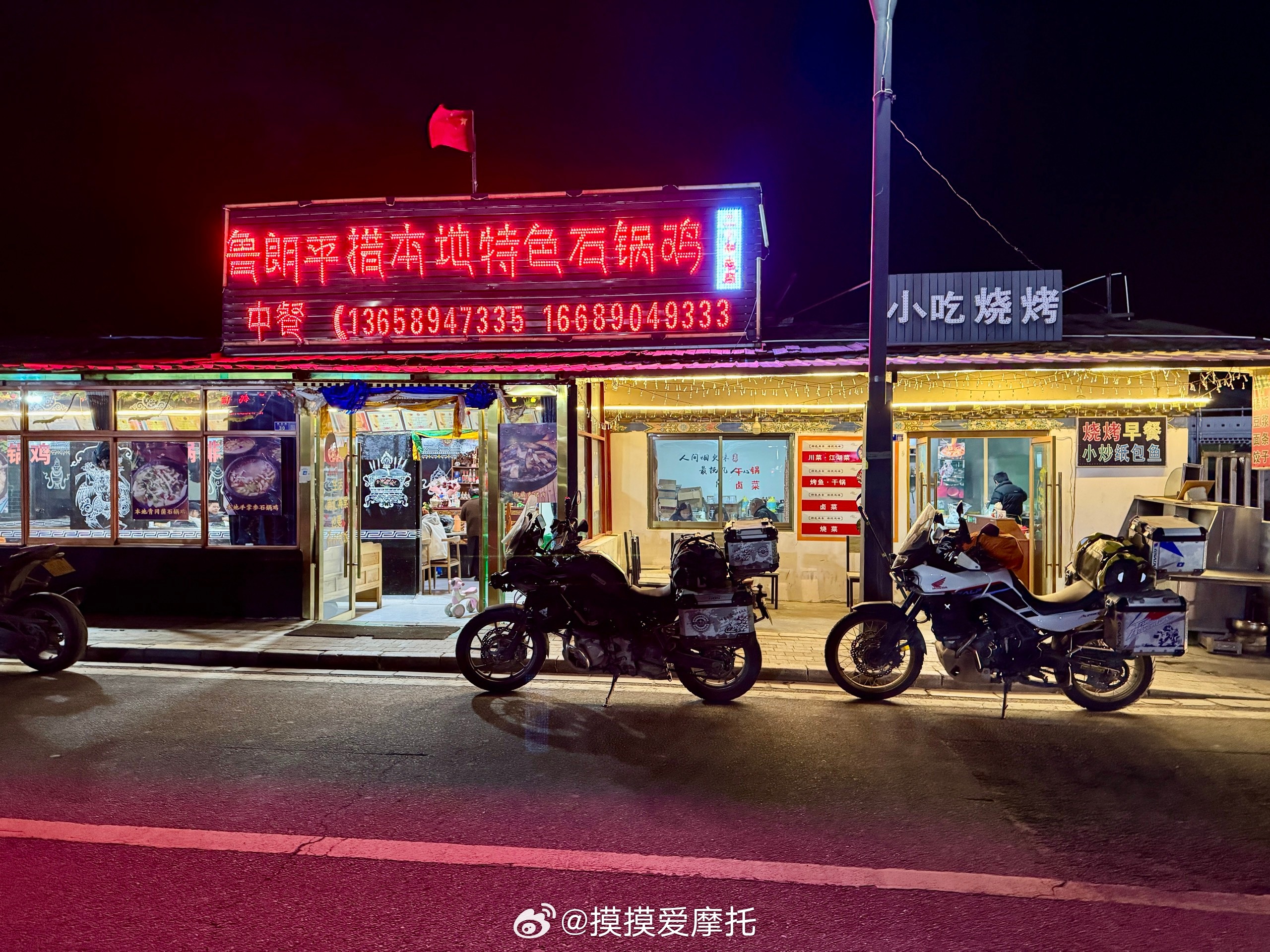 和摸摸去摩旅 给大家推荐一家鲁朗石锅鸡,老板是鲁朗本地人,店已经开了20多年了,名字叫:平措本地特色石锅鸡(二十年店),可以来试一盘哈。本田xl750摩旅机车摩托车 林芝·鲁朗平措本地特色石锅鸡(二十年店)