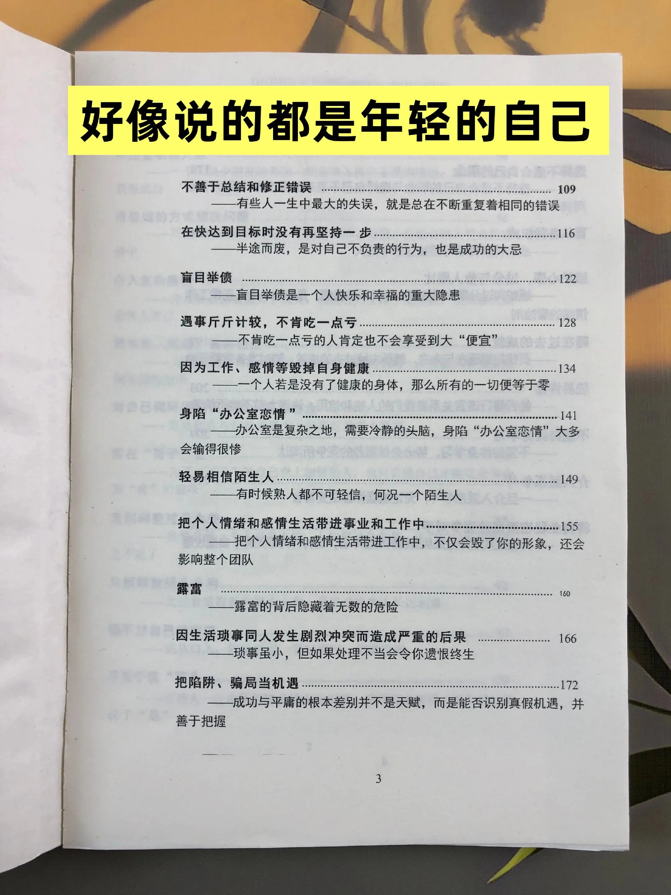 这是一本你看了会后悔,但不看更后悔的书,人生遗憾不可避免,但如果有人告诉我们哪些错误可以预防,哪些错误可以避免,那该有多好,这本书都是满满干货,没有鸡汤没有教条。