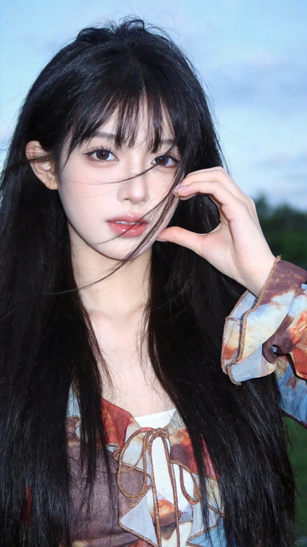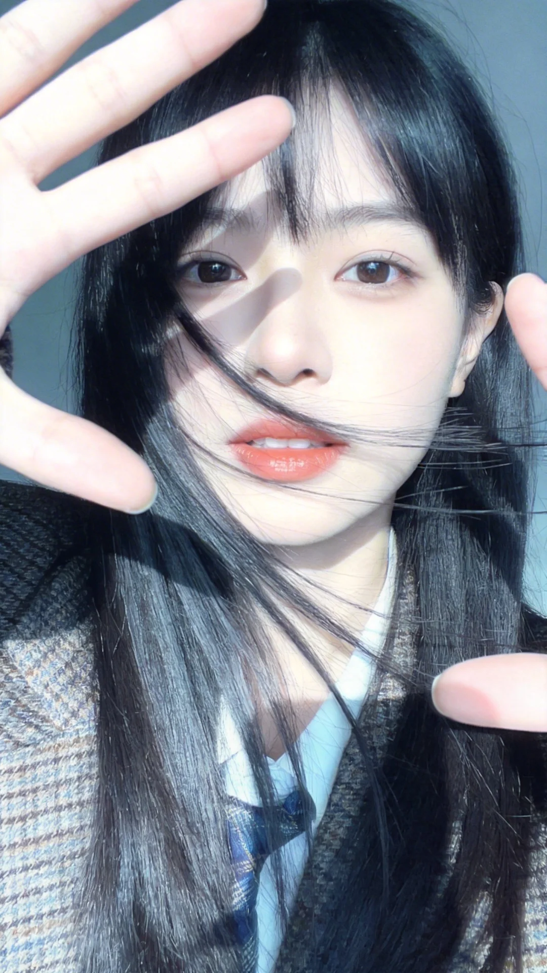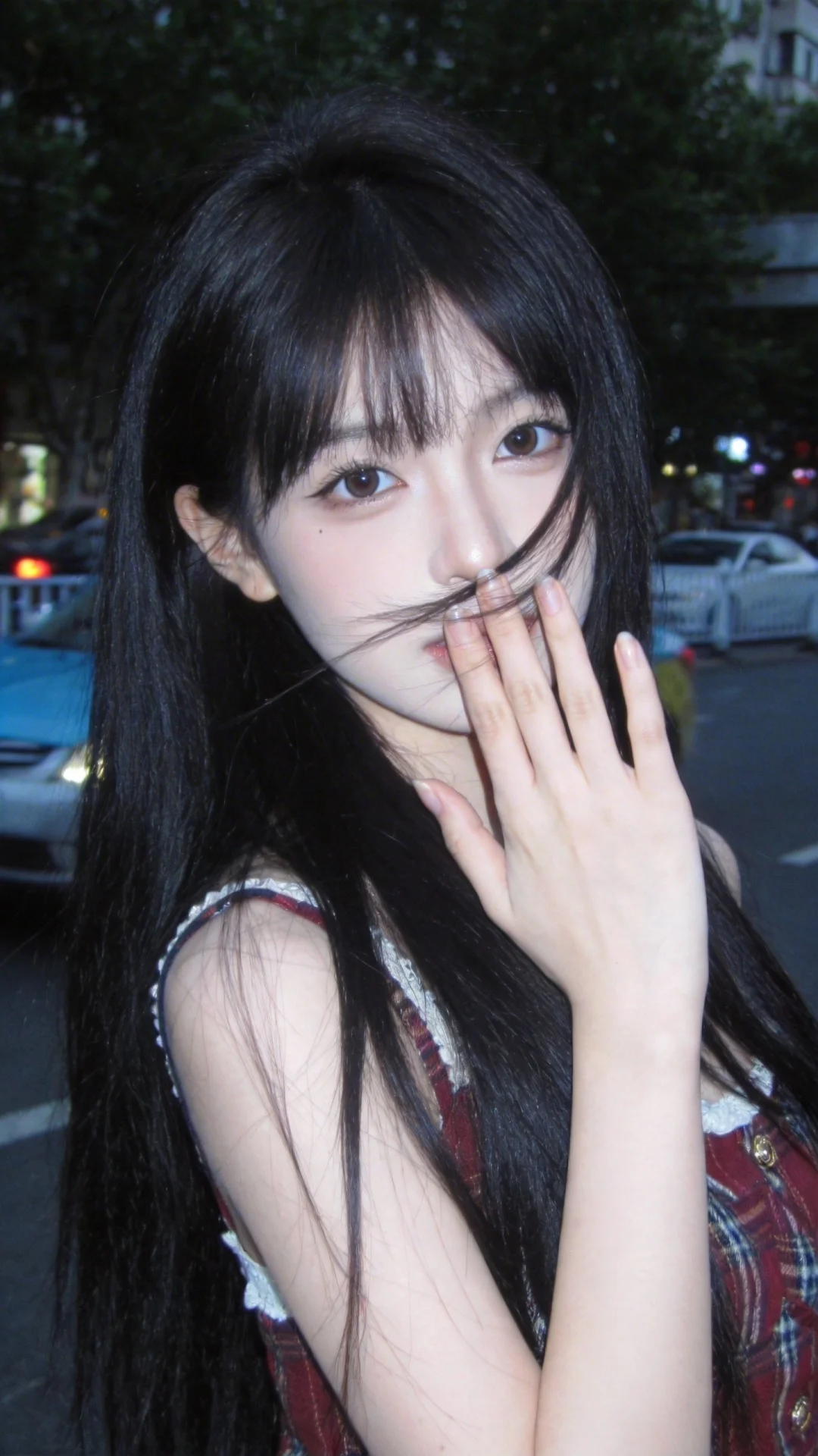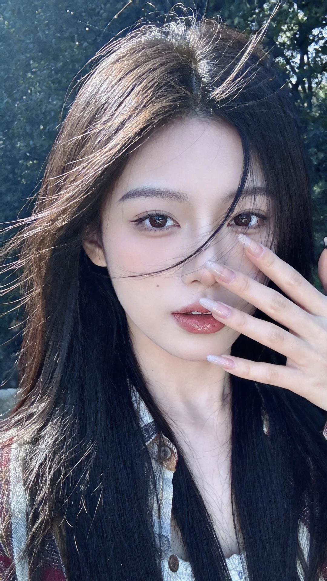 一位长发及腰、模样似洋娃娃般可爱的女生。构图随意却尽显生活中的绚丽日常,害羞,感受风,与镜头互动,人像摄影,日常快照风格,非精心构图或打光,妖冶少女,冷白皮,瓜子脸尖下巴,皮肤白皙,底妆通透,肤色均匀自然,纯欲风,发丝清晰可见。光线柔和自然,非均匀打光,表情自然松弛,照片毫无修饰感,带有生活真实感。ccd拍照感,穿着秋季服饰。