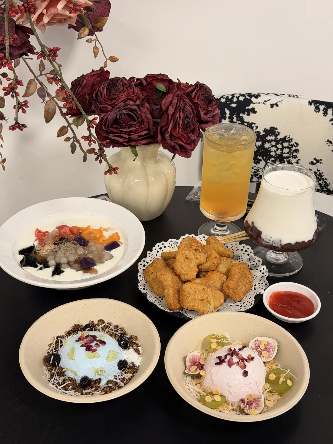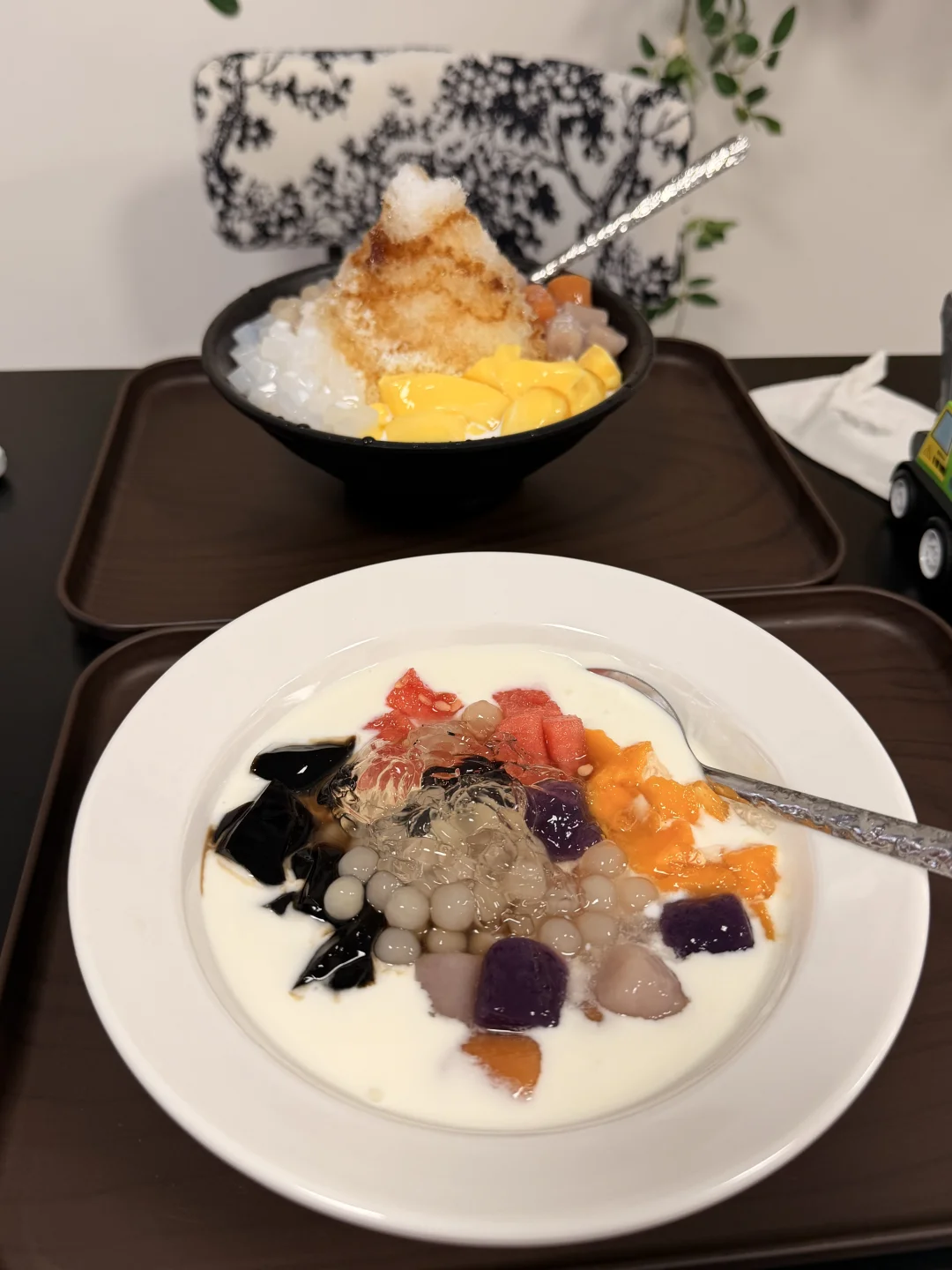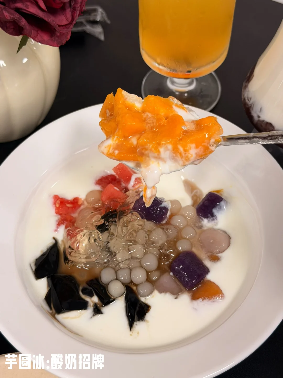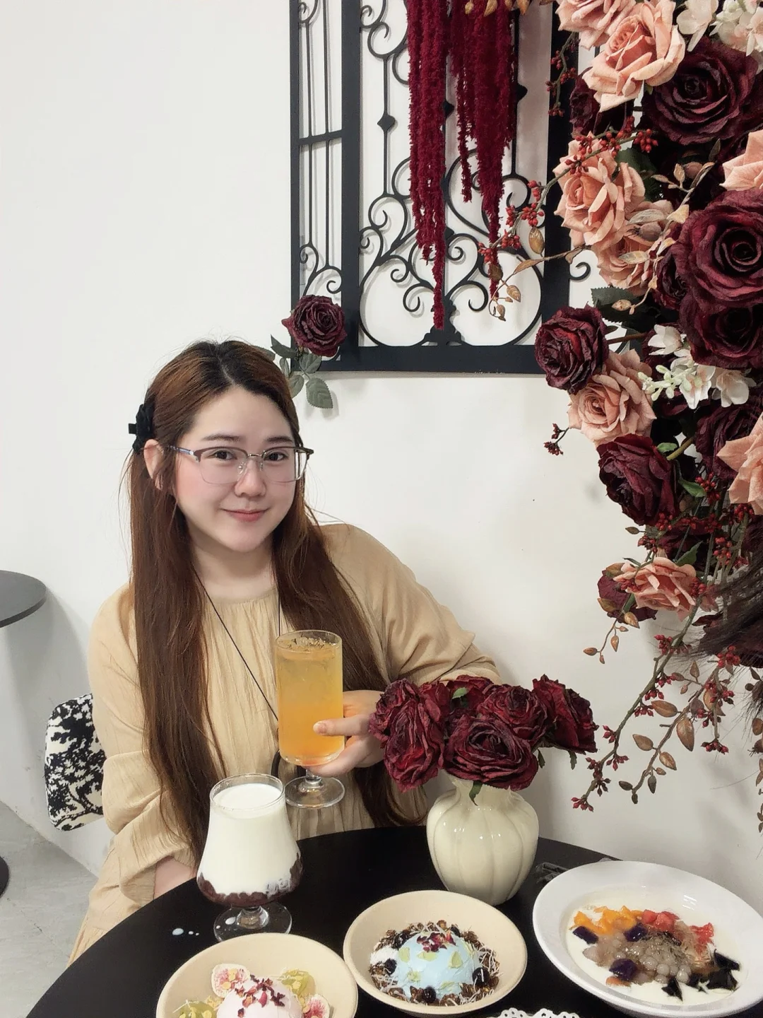新开的!!有干噎酸奶!!! 整体价位蛮友好,店内装饰高级也出片,有个厢房可以过生日,菜品还行中规中矩哒~我们7样东西加起来才120r,人均不到20-30就能吃到饱,不管是学生党还是打工人,都能轻松实现甜品自由[偷笑R]。 🍞小吃7-19r 🍨干噎酸奶12-27r 🍧芋圆冰14-20r ☕咖啡8-13r 🍹饮品10r+