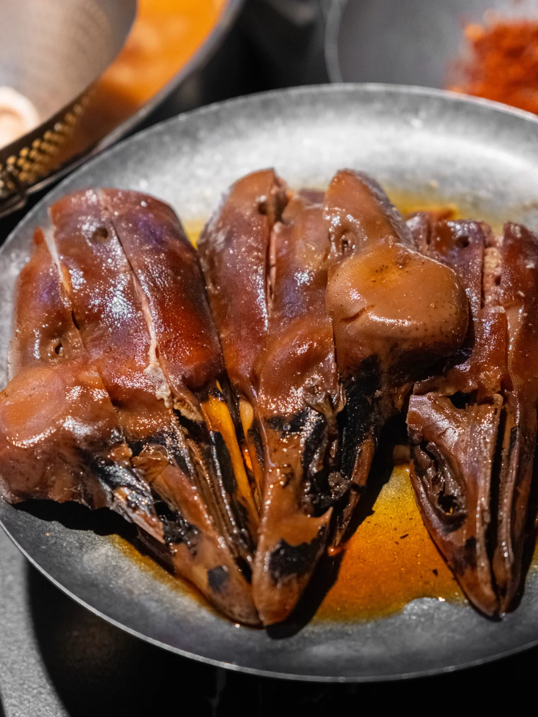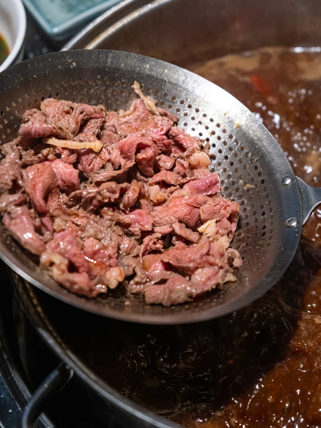 在成都第一次吃到潮汕卤水火锅 对自己来说还是比较“猎奇”的 但是竟然出乎意料的好吃! 这是用老卤汤为汤底 看着锅中薄薄的金黄色的汤底,还有些浓稠 煮开之后卤味非常非常香! 这个卤水火锅在一定程度上保留了食物本身的风味 牛肉稍微一烫就好了 粉粉的牛肉入口就是极致的嫩! 能吃到肉香,越吃越香,然后是非常浓郁的卤香 层次非常丰富 而且他们家不光是肉的品质好 豆腐豆皮这些菜据说都是进的很好的货 是真的能吃到豆香气,搭配上卤香 在口中迸发的味道超级复合!!! 好吃!!!