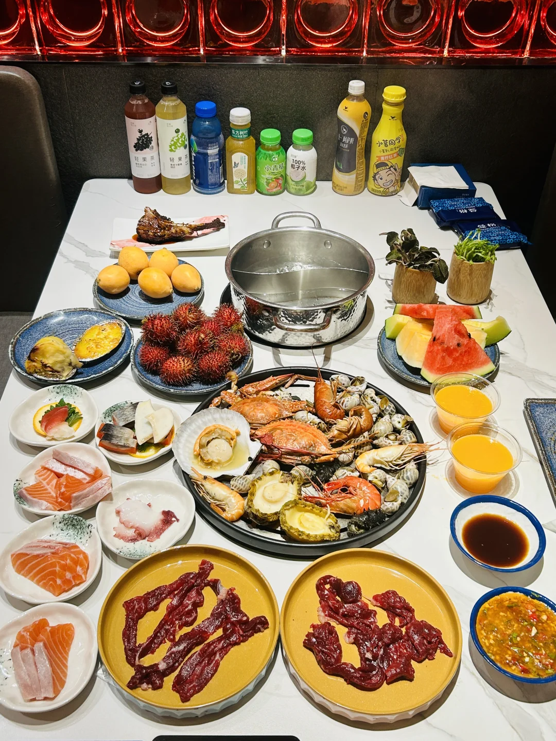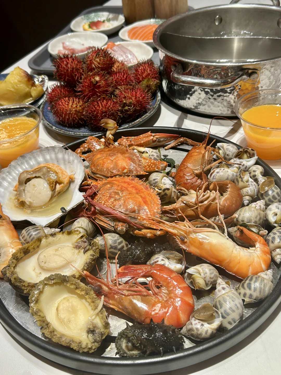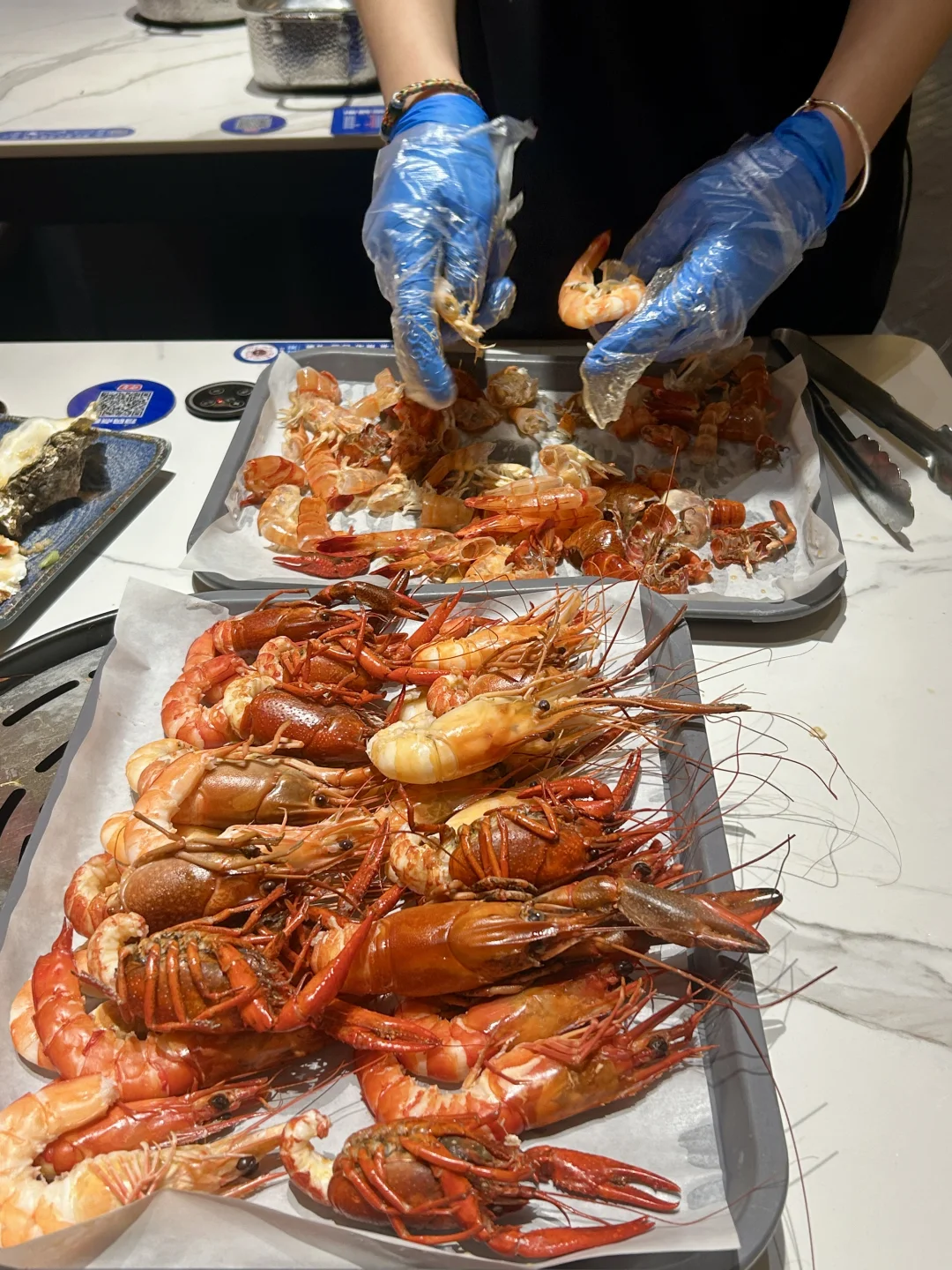 蒸海鲜&烤榴莲&水果饮料冰激凌统统自助 海鲜处理和剥虾服务也是yyds!!! 一天吃这一顿就够啦~
