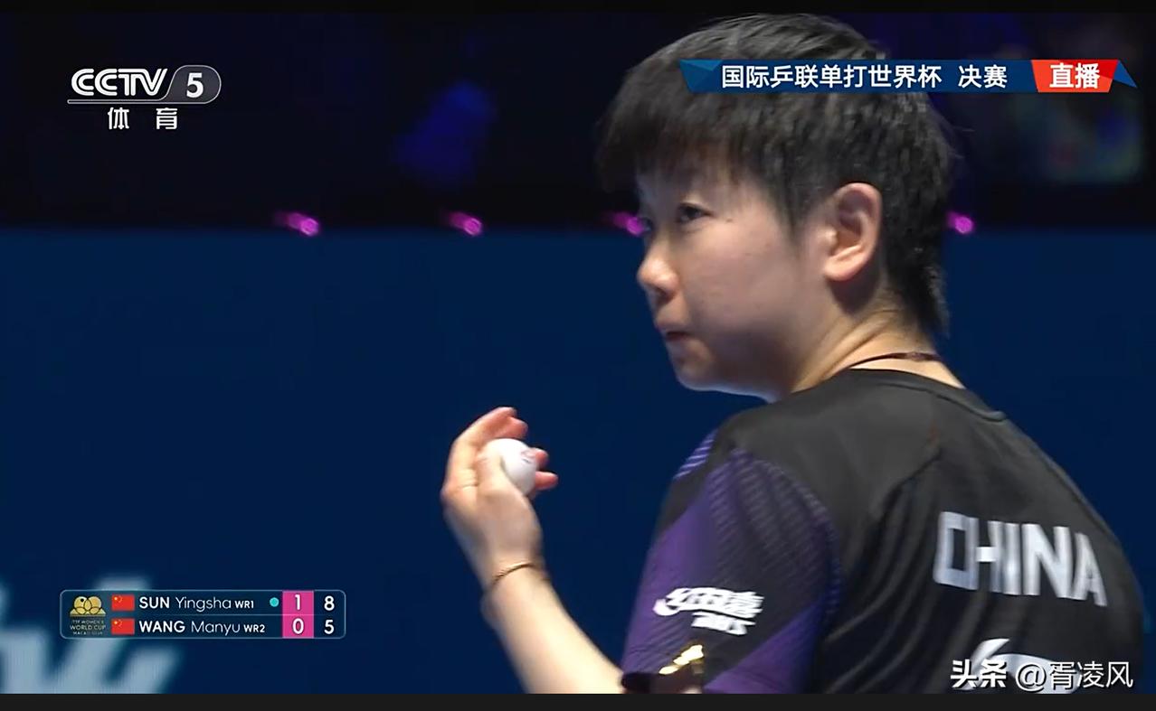 看看莎莎高举三个手指(图1),再看看图1莎莎得分后的表情(图2),霸气侧漏!澳门世界杯女单决赛,孙颖莎打破魔咒,拿到世界杯女单三连冠,创造了历史!这场比赛,前三板的竞争太激烈了!孙颖莎和王曼昱的对决,稍稍有一点差池,包括出台,或者落点略微平庸一点,就会被对方侧身爆冲或者直接拧死!这种情况在首局和第四局两次出现!这就是世一和世二之间的高质量比拼,容错率很低! 首局莎莎7-9落后连拿4分胜出,莎莎突出正手,不在反手位纠缠,侧身爆冲的威力发挥得淋漓尽致!鳗鱼后段似乎有点手软。 次局,鳗鱼的相持的连续性似乎没打出来,失误也多了些,相反,莎莎的衔接严丝合缝,8-2,后来鳗鱼接连得分追到8-6时,莎莎叫了暂停,两人的实力太接近了,谁有一点松懈被对方抓住,比分就会大起大落,暂停回来战况胶着,打到10-8,鳗鱼反手发球挑打失误,莎莎2局领跑。 第三局,莎莎顶住鳗鱼的正手短,前三板莎莎拼得很凶,发动更快,而鳗鱼更多想平稳进入相持,5-4时鳗鱼一个机会球扣丢了,不由得抱头懊恼(图4),被莎莎6-5反超时叫了暂停,整体上,莎莎的速度还是略微占了上风,鳗鱼台内正手短持续被针对,10-10,11-11,最后莎莎局内第二个挑打得分,13-11再胜。此时我在想:鳗鱼难了,丢了三局,要翻盘,客观来说,难于登天! 第四局王曼昱打了两个无谓失误,心理上有点急躁(图5),莎莎5-2、8-4建立优势,此时一个连续正手爆冲十分精彩!正当我以为比赛即将结束时,鳗鱼突然加速,连拿7分扳回一局,峰回路转啊! 第五局,回过神来的莎莎连续发动,6-1,节奏回到莎莎这一边:发挥正手优势,注重侧身施压,其正手爆冲给了鳗鱼很大压力,尽管鳗鱼在末段追了几分,但已经无力阻止莎莎加冕。 这场球,莎莎胜得实至名归,鳗鱼似乎有点疲惫,自己的特点没有打出来,被莎莎连续的正手输出压制,打不出完整的战术体系,实在是有点可惜。莎莎的计算基本在鳗鱼前面,关键分的调动更到位,出手更果断。 恭喜莎莎,还是那句话,海产姐妹谁捧杯,咱们都高兴!现在,得好好关注王楚钦和松岛辉空的对决了,大头加油啊,期待莎头再次巅峰相见!