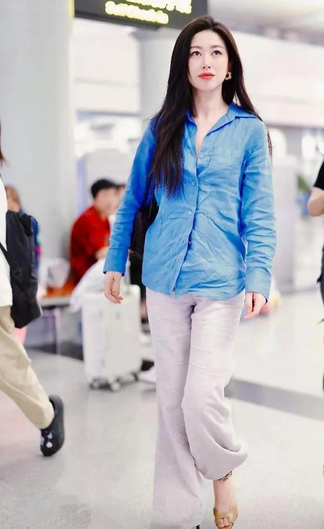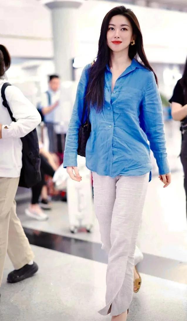 朱珠这身蓝衬衫配阔腿裤,直接拿捏职场高级感! 清爽的蓝色衬衫自带知性气质,浅色系阔腿裤舒适又显瘦,红蓝撞色的配饰点缀,让整体造型简约不单调。 适合职场女性的穿搭模板,轻松穿出干练又优雅的气场。 朱珠同款 职场穿搭 通勤穿搭 高级感穿搭