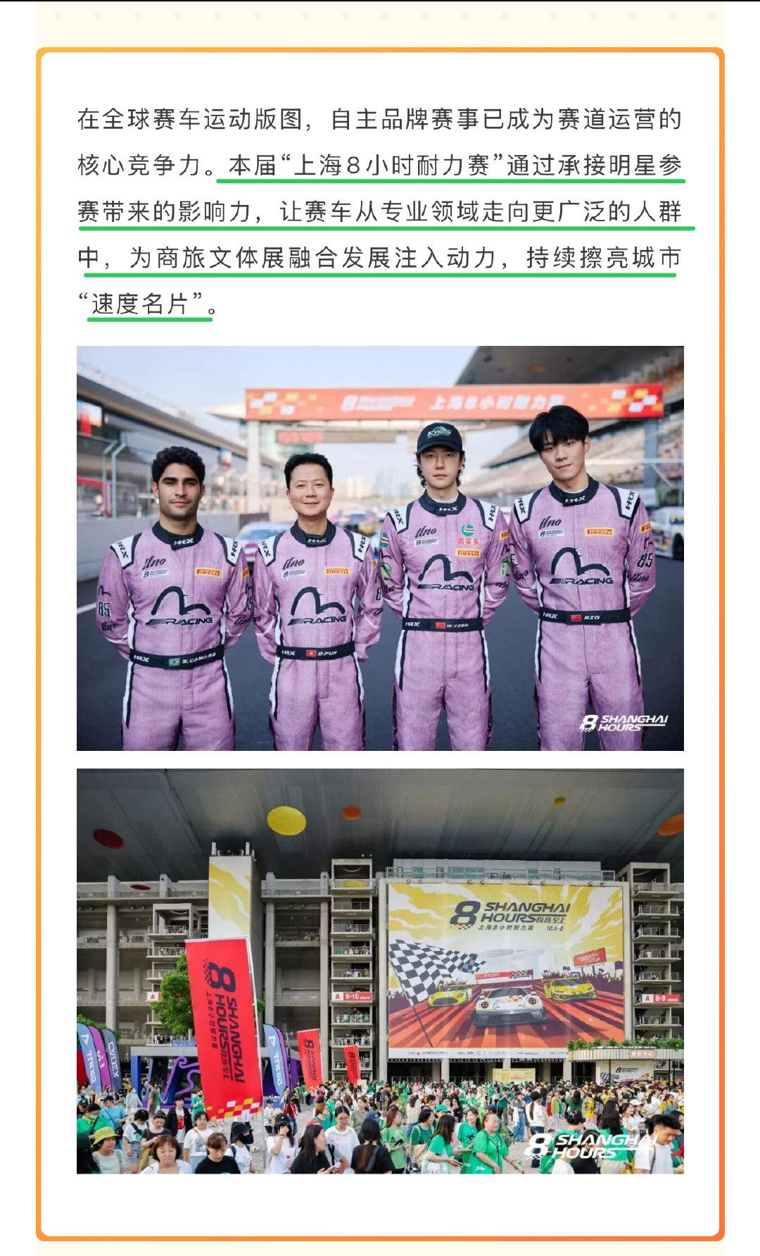 顺德陈村的莫氏鸡煲火了,老板忙到不想要那么火。不过当地文旅积极承接流量,迅速开辟停车场,协助做好交通、卫生和照明,还发布了吃鸡地图和旅游指南,引导外溢的流量带旺周边经济。 现在发展区域文旅经济是热点。经常看到大大小小的各级文旅对热点事件的天降流量都很重视。 由此联想到了王一博,一次比赛就带来五万名观众的超级流量,文旅怎么可能不重视。 去年上海市ZF认证王一博的参赛让汽车赛事热度和关注度飙升,极大带动了区域酒店、旅游、餐饮、购物等消费。 上海正在打造国际赛事名城,而王一博肉眼可见推动了CHINA GT和上海8小时耐力赛两项本土赛事的大发展,带来了前所未有的国际关注,赛事的规模已经是国际级的。 所以本月的上海比赛文旅部门必定会加强安保监管。 去年一些xz粉丝无视主办方严重警告⚠️,带着比赛无关人员xz的照片和横幅去赛场寻衅滋事,扰乱比赛秩序,搞不正当竞争,企图毁坏赛车手王一博的职业生涯。该群体后被安保驱赶出场。 这次xz粉丝仍然头铁扬言要继续闹事。恶意扰乱国际赛事,这可不是粉圈行为,严重者会触犯刑/法。