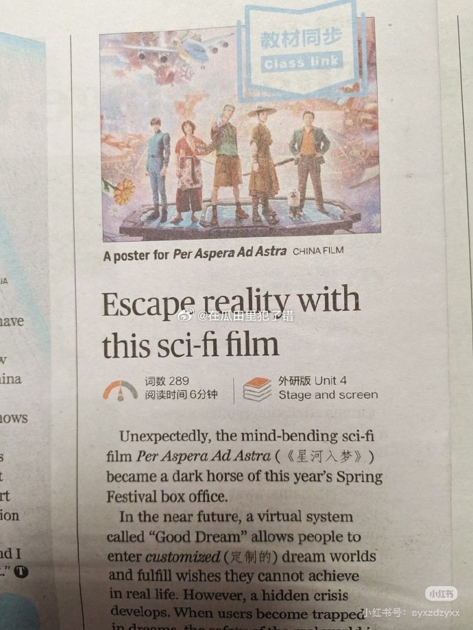 二十一世纪学生英语报上出现王鹤棣电影《星河入梦》