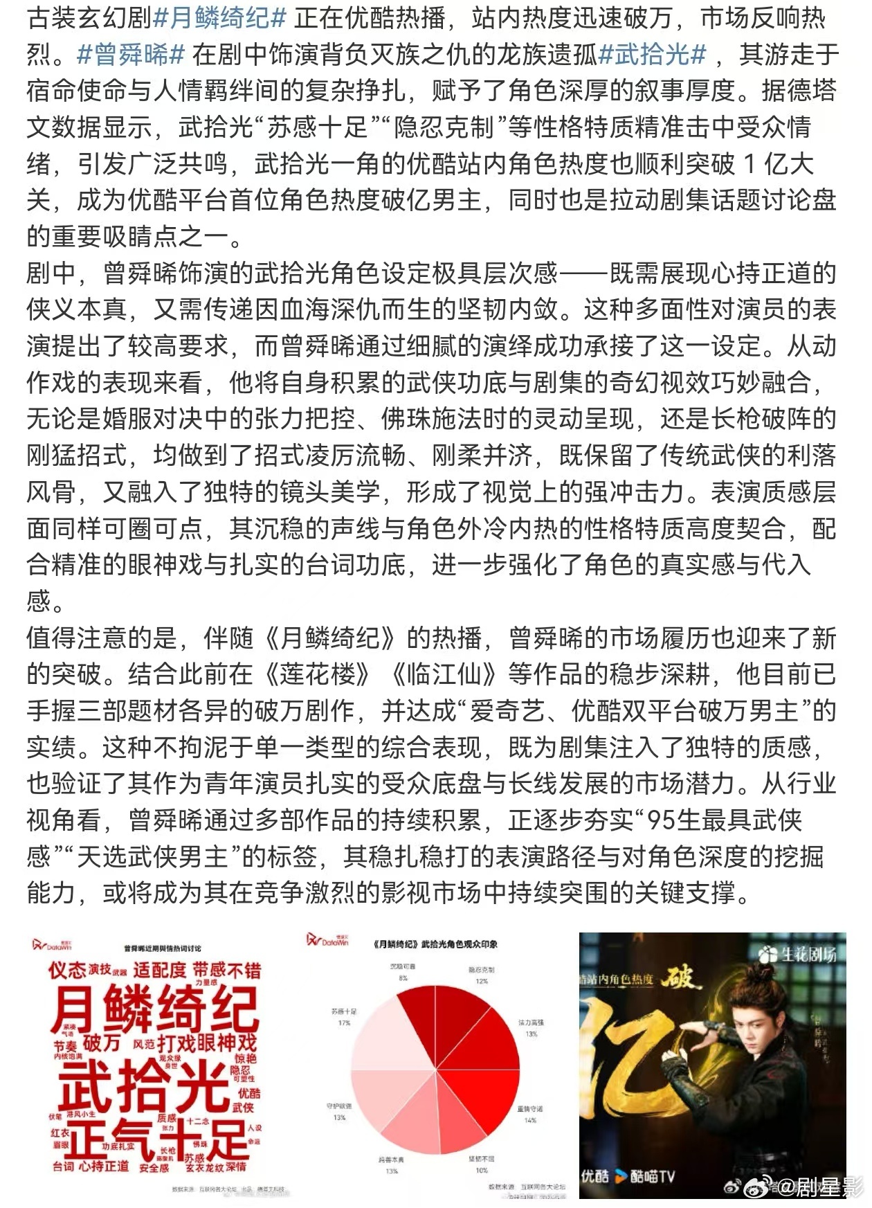 曾舜晞武拾光观众印像曾舜晞月鳞绮纪武拾光角色观众评价观众对武拾光评价极高,曾舜晞