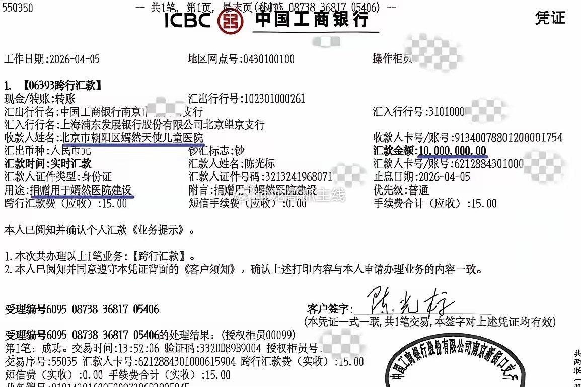 谁能想到!陈光标承诺送张雪劳斯莱斯,最后竟这么做了,他真的直接把车变现了,给嫣然医院捐了1000万元,而且是用个人账号转账,不是公司账户,还晒出了转账凭证。之前有人说他为了蹭张雪热度,而夸大其词送车,谁能想到那个张雪不图车、不图钱、不图名、不图利啊!还完全不配合表演。而陈光标为了证明不是作秀,真的把车给卖了,并娟给了嫣然医院。不得不说陈光标的实力还是挺牛的,真是不差钱。实打实硬着头皮兑现了。
