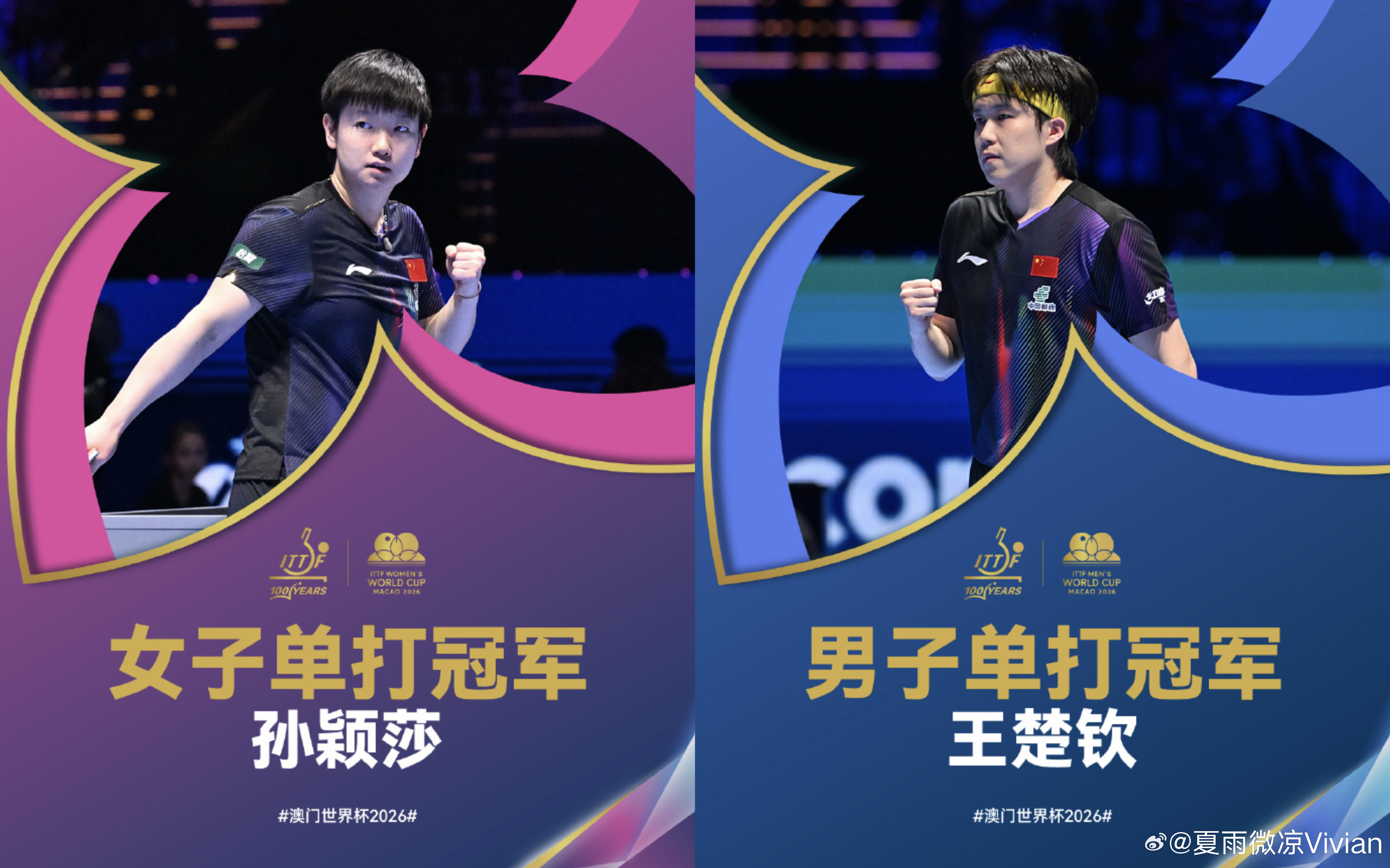 这一周看2026年澳门世界杯比赛,心脏都要跳出来了,孙颖莎和王楚钦每一场比赛都很紧张刺激,他们两个人的玄学太多了,一般情况下,一个人夺冠了,另一个人大概率就会夺冠,今天看到孙颖莎4-1战胜王曼昱,我就觉得王楚钦也稳了,但是没想到王楚钦和松岛辉空打到了决胜局,最终顶住压力夺得世界杯首冠,也是没想到历尽千辛万苦顶峰相见的莎头,在冠军合影环节又“吵”了起来。看看孙颖莎和王楚钦在第一次拿到世界杯冠军的庆祝姿势吧,一切都那么熟悉,休息一段时间,准备看伦敦团体世乒赛喽,晚安。。。