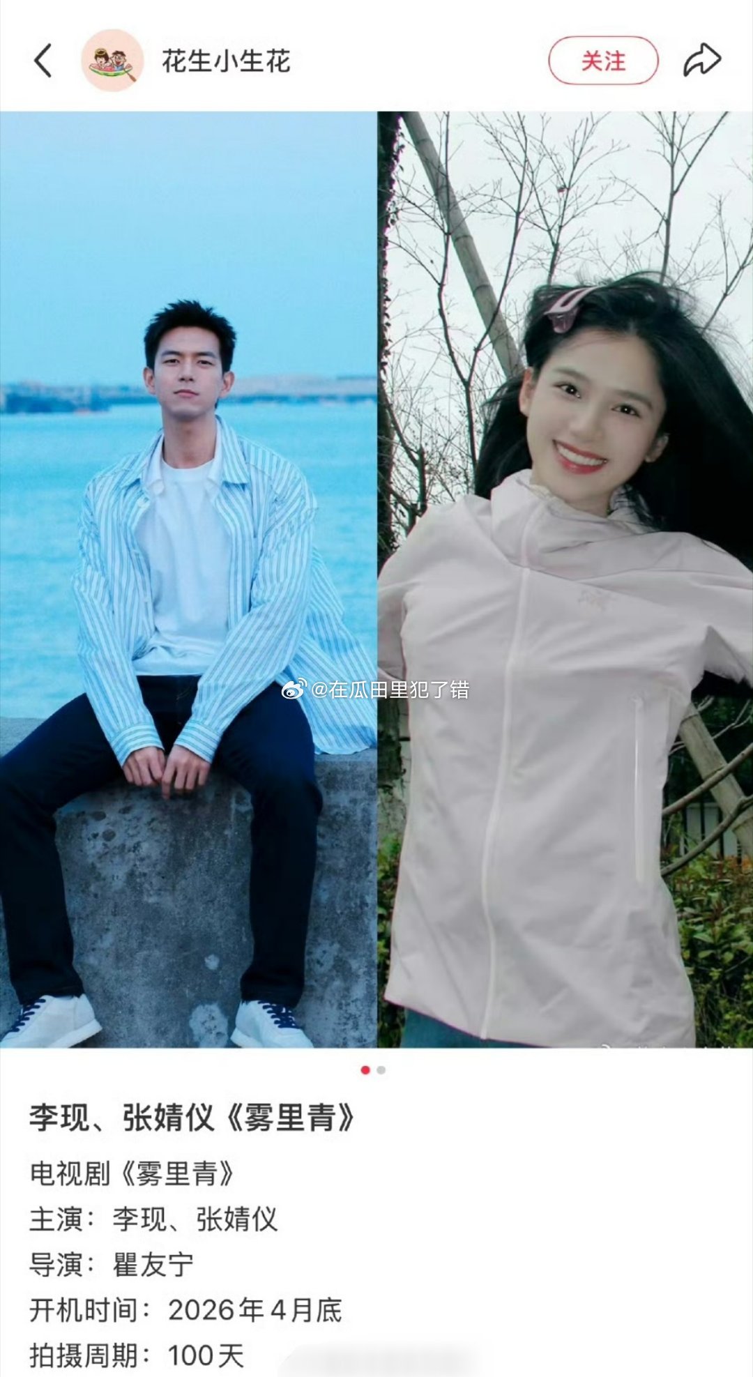 李现张婧仪雾里青4月底开机他俩的cp看起来怎么样?