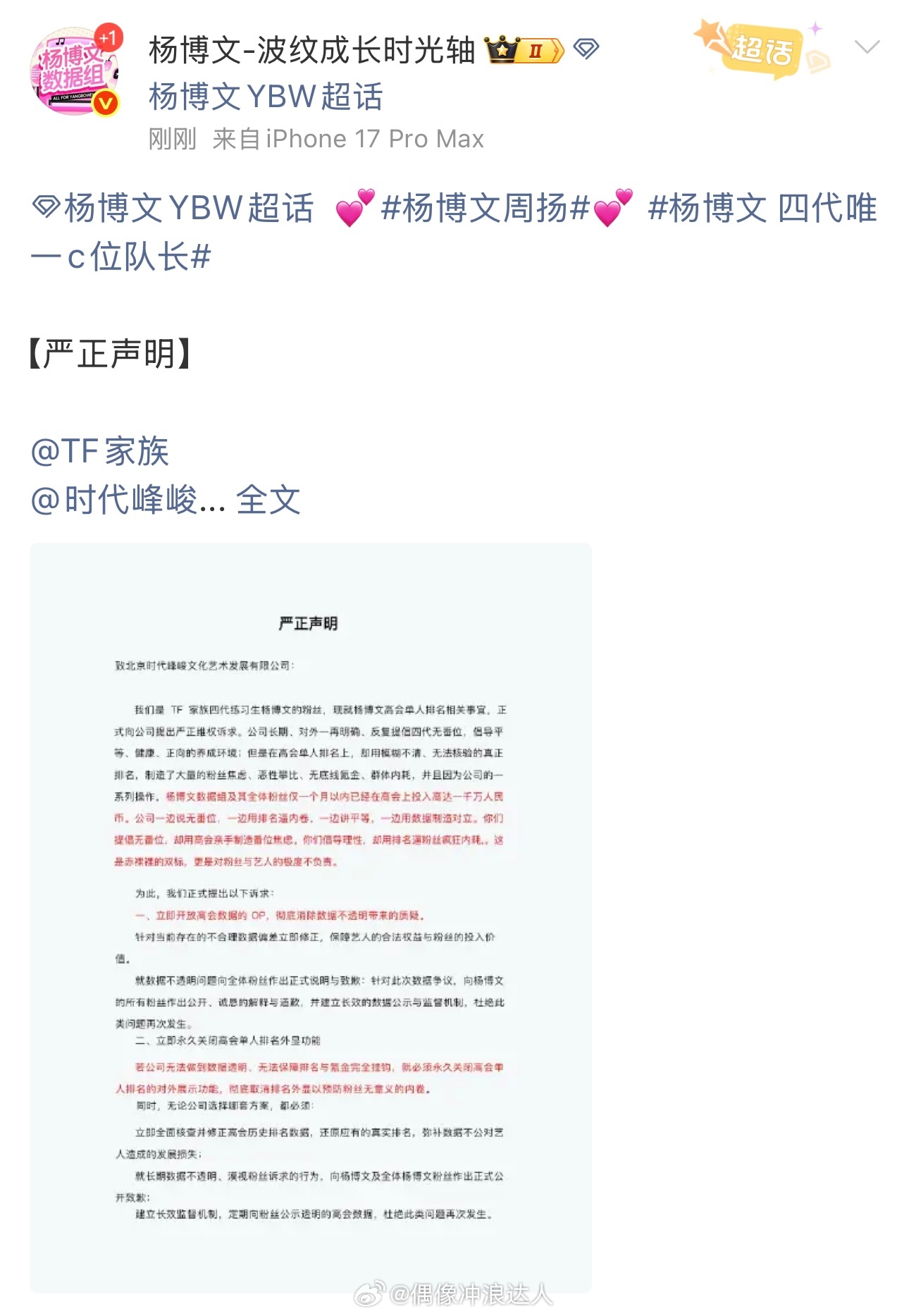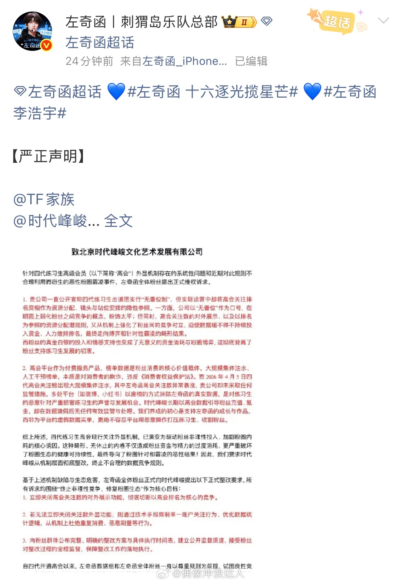 王橹杰 左奇函 杨博文粉丝发文维权👇