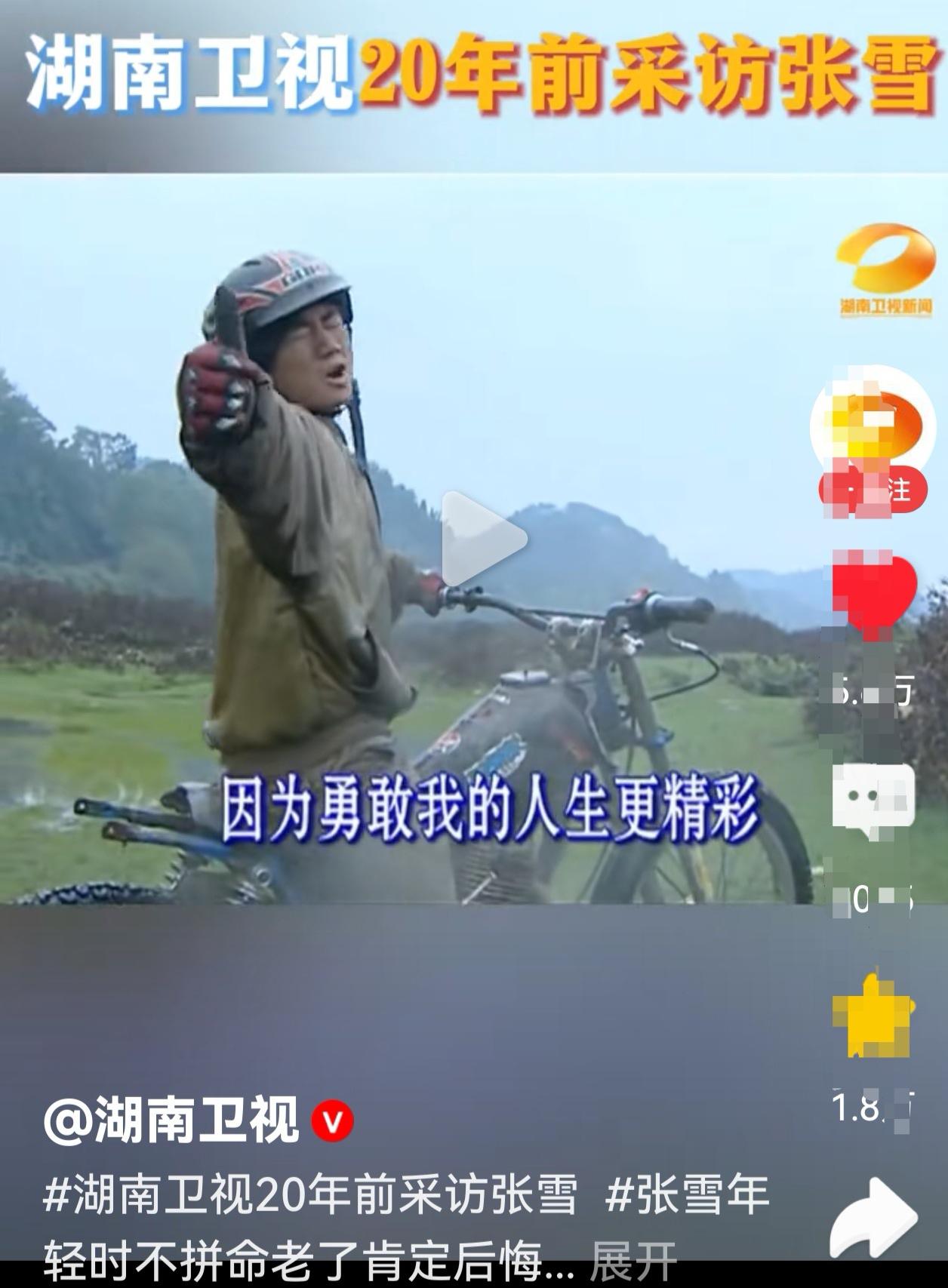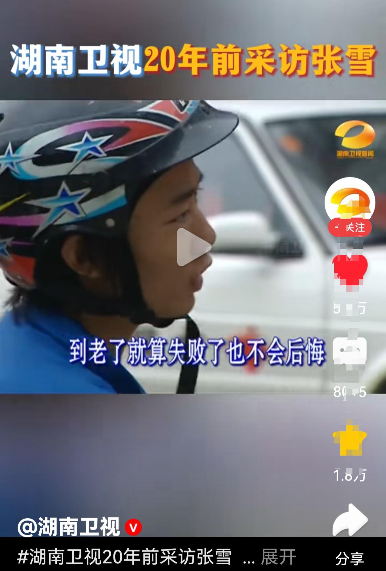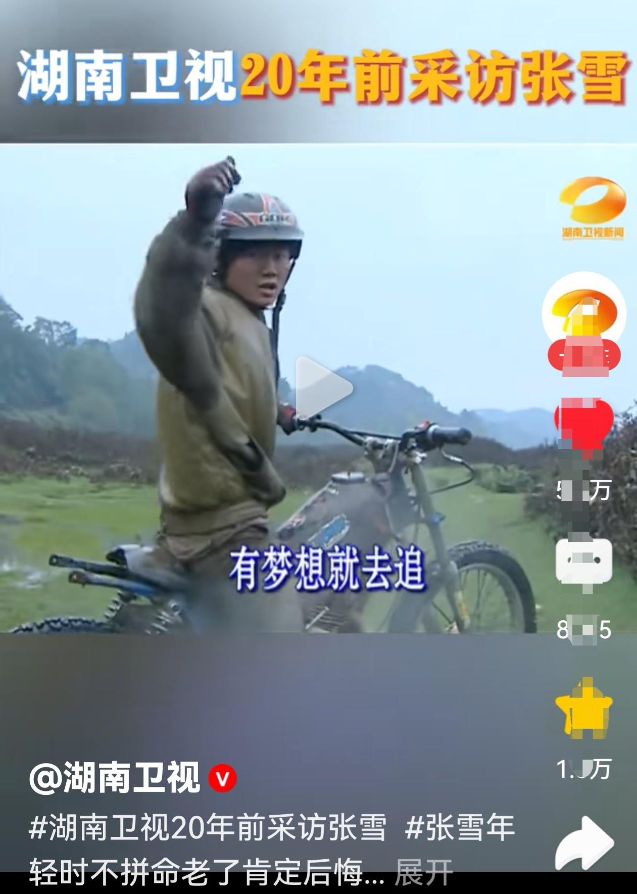 谁也想不到,二十年前并不耀眼很平常的一段视频采访,让湖南卫视再度成为人们关注的热点。 最近,刷爆手机屏的莫过于2006年湖南卫视《晚间新闻》采访怀化麻阳小伙张雪的一段视频。 难能可贵的是,在湖南卫视电视台工作人员产生即将放弃采访张雪念头时,硬是被张雪“死缠烂打”的一片真诚所感动,不但满足了张雪的采访心愿,而且湖南卫视在收视率很高的《晚间新闻》中播放了采访视频,才让全国观众甚至是世界观众了解到20年前张雪执着追求目标的决心和恒心。 几十年默默无闻的奋斗,今天张雪终于成功了。张雪机车“干掉”了雅马哈,终结了欧美日品牌在摩托车公路赛事长达37年的垄断,其意义非同寻常,具有里程碑。 现在回头看,如果当年湖南卫视终止了对张雪的采访或者采访了没播出,那带来的遗憾是无法形容的,湖南卫视估计也会捶胸顿足。 在这里,真是要感谢湖南卫视,感谢当年被张雪的执着所感动的工作人员没有放弃,让大家了解到一个成功者艰辛的奋斗历程和付出的辛勤汗水。 湖南卫视采访张雪这段感人至深的视频,成为当今青年人最好最经典的励志教材:“因为勇敢,我的人生更精彩。”春日生活打卡季 张雪峰采访视频