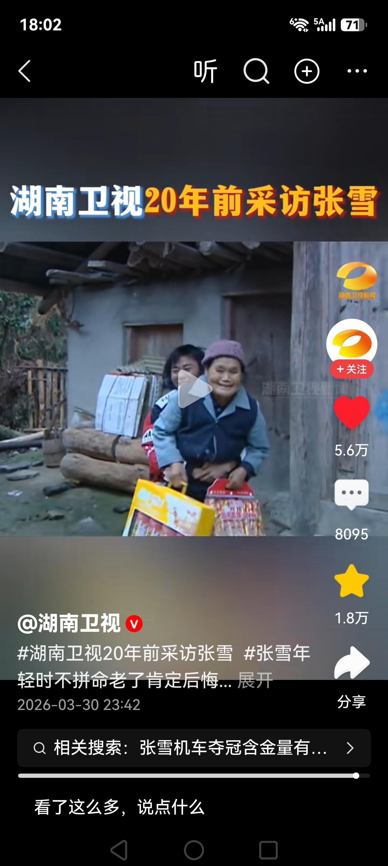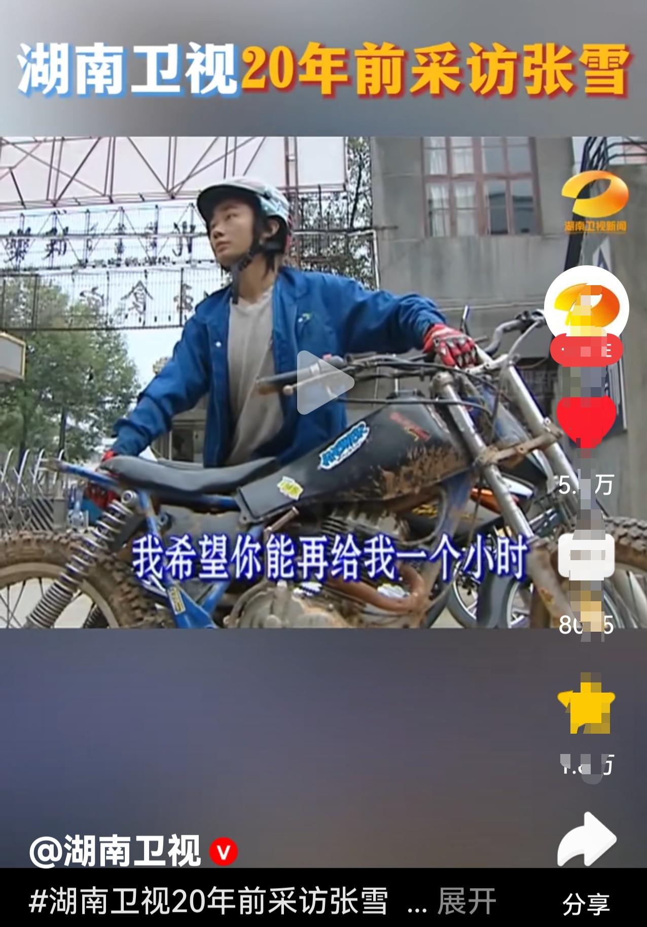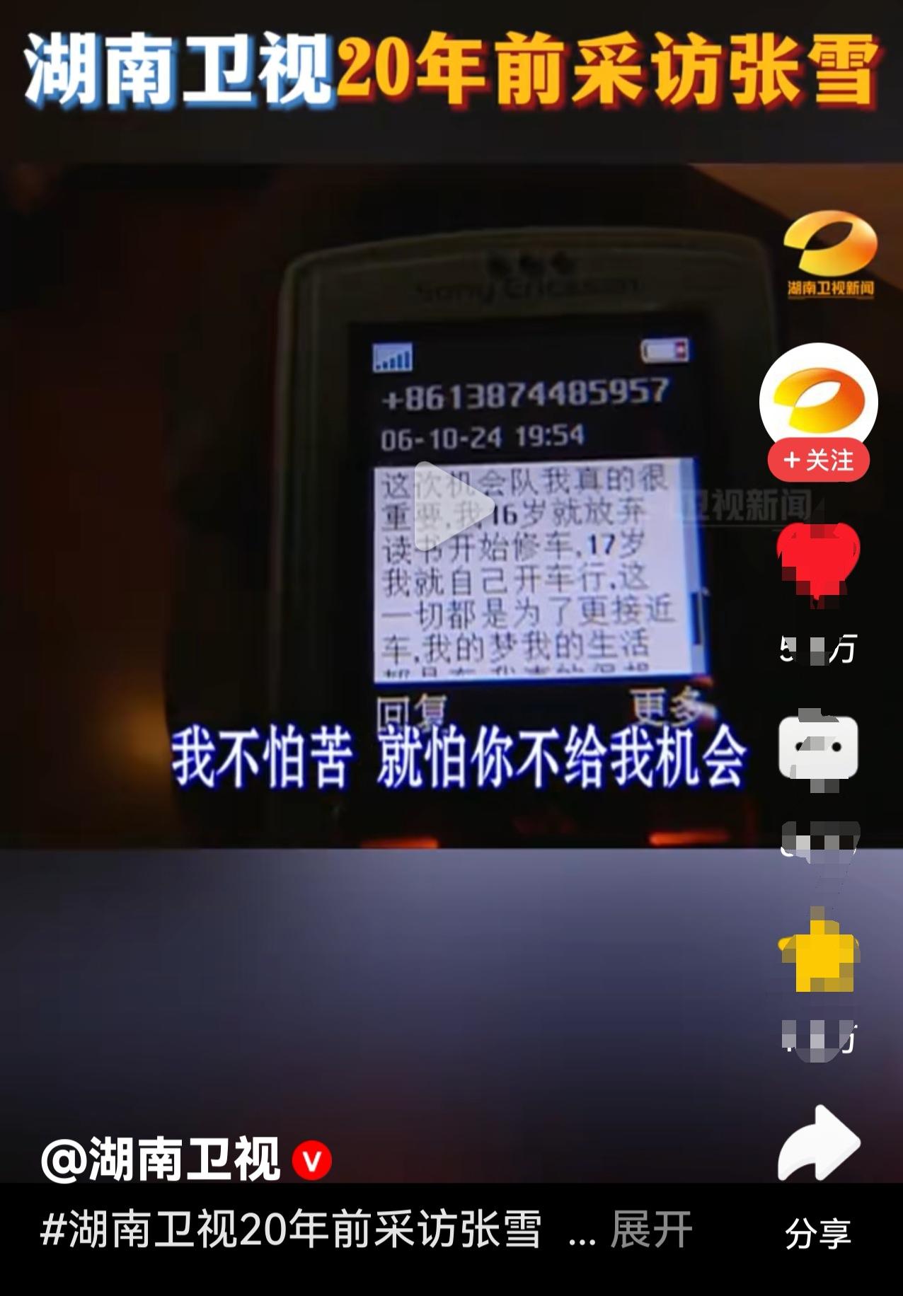 谁也想不到,二十年前并不耀眼很平常的一段视频采访,让湖南卫视再度成为人们关注的热点。 最近,刷爆手机屏的莫过于2006年湖南卫视《晚间新闻》采访怀化麻阳小伙张雪的一段视频。 难能可贵的是,在湖南卫视电视台工作人员产生即将放弃采访张雪念头时,硬是被张雪“死缠烂打”的一片真诚所感动,不但满足了张雪的采访心愿,而且湖南卫视在收视率很高的《晚间新闻》中播放了采访视频,才让全国观众甚至是世界观众了解到20年前张雪执着追求目标的决心和恒心。 几十年默默无闻的奋斗,今天张雪终于成功了。张雪机车“干掉”了雅马哈,终结了欧美日品牌在摩托车公路赛事长达37年的垄断,其意义非同寻常,具有里程碑。 现在回头看,如果当年湖南卫视终止了对张雪的采访或者采访了没播出,那带来的遗憾是无法形容的,湖南卫视估计也会捶胸顿足。 在这里,真是要感谢湖南卫视,感谢当年被张雪的执着所感动的工作人员没有放弃,让大家了解到一个成功者艰辛的奋斗历程和付出的辛勤汗水。 湖南卫视采访张雪这段感人至深的视频,成为当今青年人最好最经典的励志教材:“因为勇敢,我的人生更精彩。”春日生活打卡季 张雪峰采访视频
