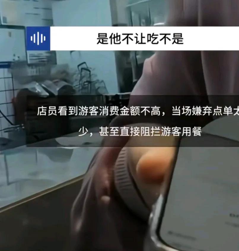 游客花86元就餐店家嫌消费太少不让吃,女子说店员看到 消费金额不高, 当场嫌弃点单太少, 甚至直接阻拦游客用餐, 女子 说按需点了两道菜,两份米饭,餐费共计86元, 却没想到店员嫌弃消费太少,两人应该要赶演唱会的时间,所以急着离开, 说不让吃就退了吧, 结果店员又让就餐, 店员可能是想强制叫他们多点点儿, 结果人家不吃他这一套。 网友说,商家这事做的真不地道,86就不让人家吃饭, 嫌消费低,这老板以后的生意要🔥