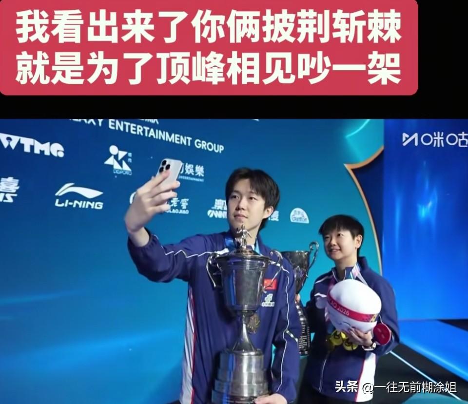 王楚钦又胆大了一次: 拍合照时工作人员递过来手机,王楚钦还抖甩几次玩偶吉祥物推辞:我拍不了,给她拍…… 有网友说,明明很听话的大头,非得犟嘴。 也有网友说,钦哥是故意的,他在逗她玩呢! 无论怎样,两小只太可爱了,一次又一次给我们带来惊喜和欢乐。 恭喜他俩登顶夺冠。