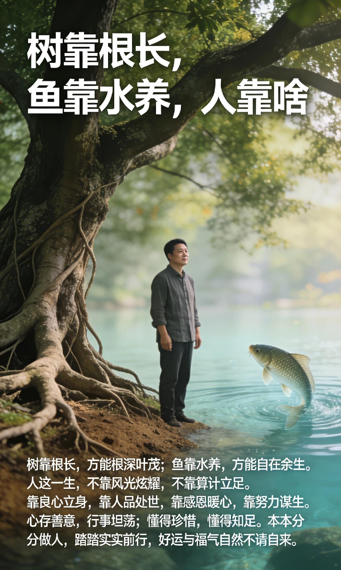 树靠根长,鱼靠水养,人靠啥? 树靠根长,方能根深叶茂;鱼靠水养,方能自在余生。