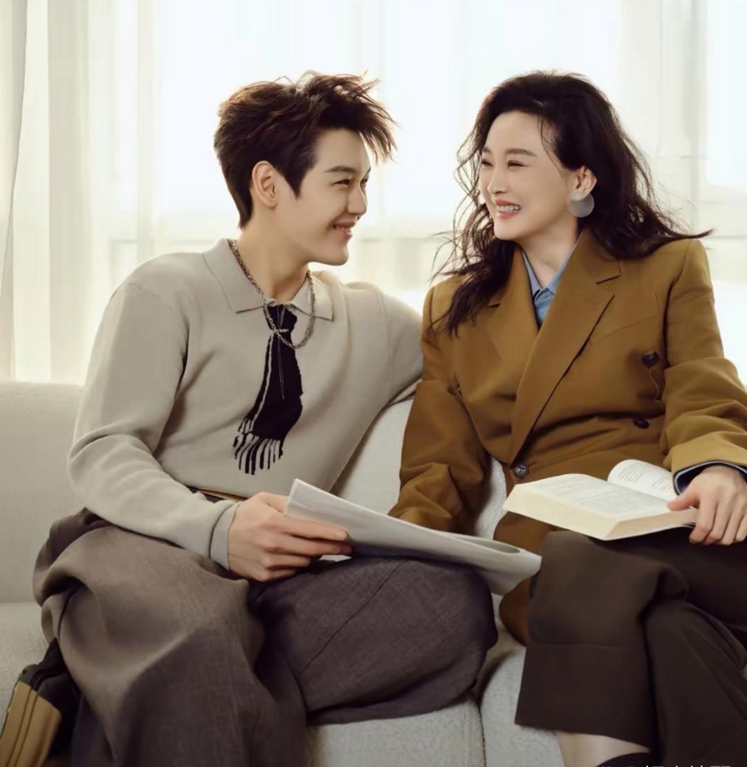 王艳和她儿子笑起来一模一样。