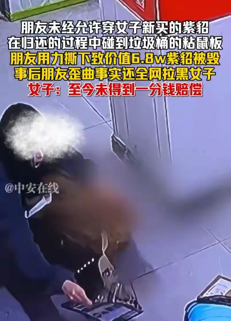 从卫生间出来,悲剧的发生只在一瞬。随手一搭,昂贵的紫貂与粘鼠板发生了致命的接触。接下来的不是小心翼翼的补救,而是更令人窒息的操作——猛地一扯!皮开毛落,六万八千元的价值与期待,在粗暴的动作下瞬间清零。那一刻,毁掉的不仅是一件衣服,更是一种对物品、对他人财产最基本的敬畏心。