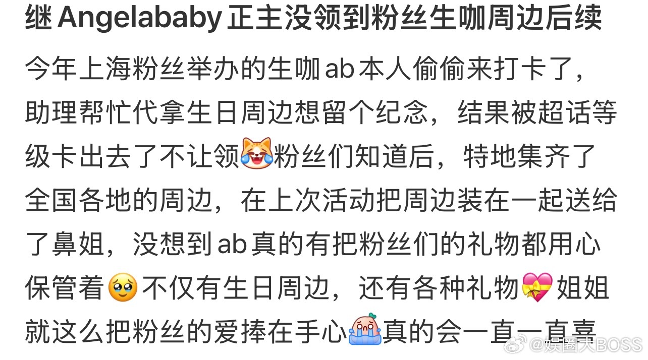 Angelababy 年上姐姐会疼人Angelababy家里摆满了粉丝的礼物 Angelababy真的把粉丝的爱狠狠珍藏住了!之前上海粉丝生日应援,ab本人偷偷打卡,助理代拿周边被超话等级卡出去,粉丝们特意集齐全国各地的周边送到她手上,没想到姐姐不仅全部收下,还一直好好保管着🥺客厅里满满当当全是粉丝送的礼物,手作油画、定制积木、生日应援袋…每一份心意都被认真对待,甚至会分享感谢😭