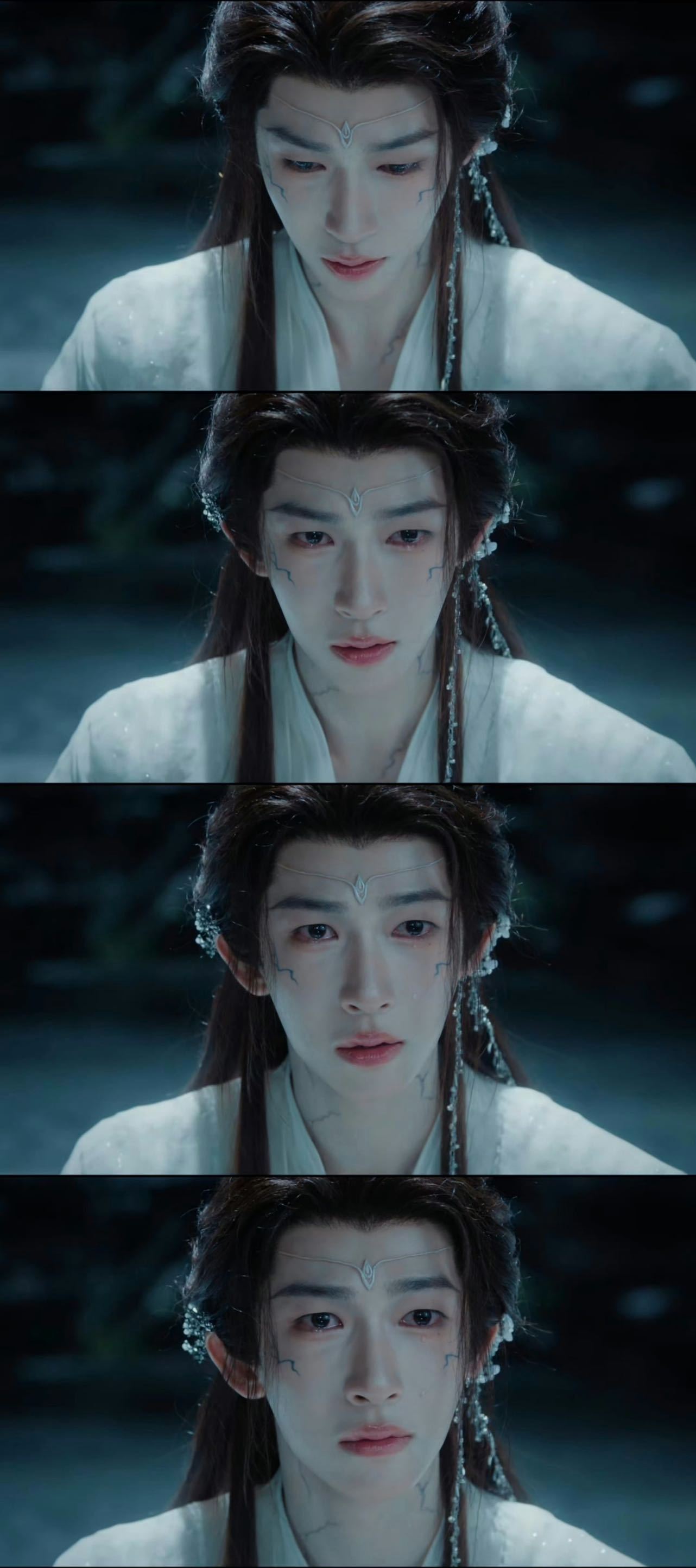 太美了,刘宇饰演的天地在月鳞绮纪的这场哭戏,静静地、无声地、却有着让我痛到捶胸顿足的力量。世间最让人悲伤的并不是强烈情绪的宣泄,恰恰是久久地等待、诚挚的信赖彻底崩塌的那一刻。天地被懵懂囚禁那么漫长的岁月,却仍然毫无怨言,当他谈论着以为的“朋友”,不以为自己的孤独,不以为自己漫长的等待,却仍然以为囚禁是对自己的善意,那纯澈的眼神是从未怀疑的信赖。当真相揭开,他抬起头眼泪落下,满是震惊却没有丝毫仇恨……太痛但也太美了,远比爆发崩溃后的痛哭更有力量,那是一个生来纯善、心性赤子之人,在觉察自己被背叛后的反应——他人的恶在明媚阳光下留不下任何阴影和痕迹,但雨滴却会因着忧伤而落在干涸的土地滋润万物,这便是天地的痛、天地的爱。说实话,除了刘宇以外我真的想象不出谁还能演天地这样的角色,美、善、纯、淡雅……真的只有刘宇!!!只能是刘宇啊!!!