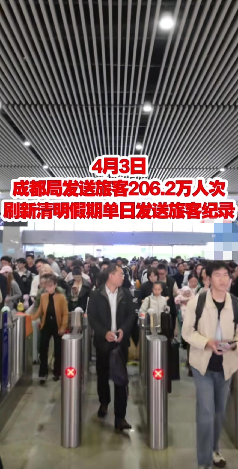 铁路清明假期单日旅客发送量创新高。 成都铁路清明假期可太火了!单日旅客发送量居然创新高。清明本就是出行小高峰,大家或是返乡祭祖,或是出游踏青。成都这座充满魅力的城市,美食诱人,像火锅、串串香,谁能拒绝呢?文化景点也不少,武侯祠、杜甫草堂等。这么多好玩的好吃的,吸引了大量游客。而且铁路出行方便又快捷,大家都愿意选择它。估计火车站那是人山人海,热闹非凡。这也说明成都的吸引力越来越大,旅游市场越来越火啦,期待后续还能有更多人来感受成都的魅力。 清明客流量 清明出行大数据 成都高铁南站 成都火车照片