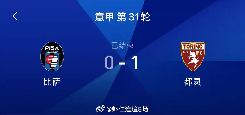 比萨主场0-1不敌都灵。比赛第80分钟,都灵替补上场的切-亚当斯接马库斯·佩德森助攻,打入制胜一球。尽管比萨在控球率和进攻次数上稍占优势,但未能把握机会。此役过后,深陷降级区的比萨保级形势更加严峻,而都灵则凭借这场胜利稳固了其中游位置。