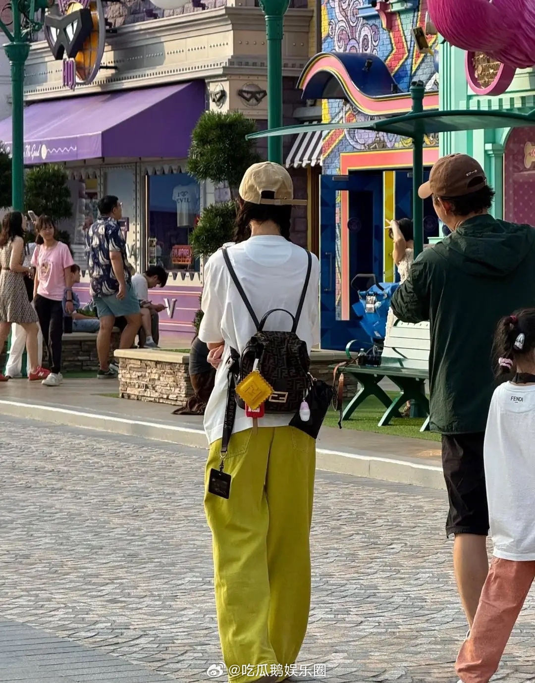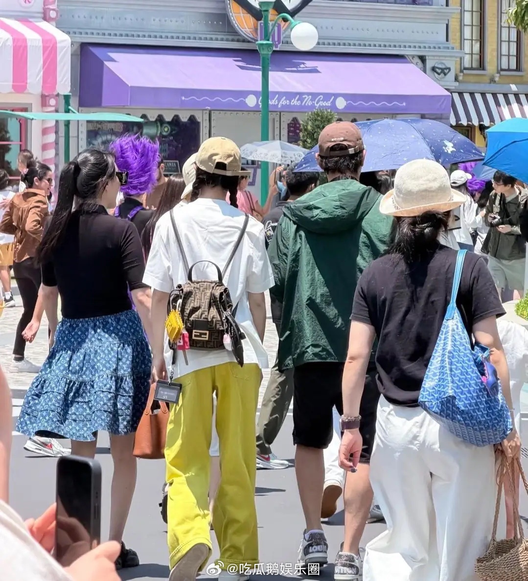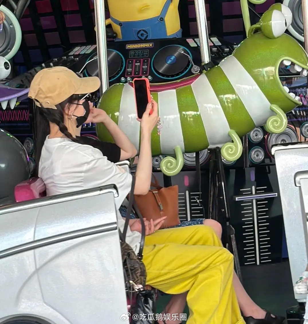 唐嫣罗晋陪女儿现身新加坡环球影城游玩,唐嫣身穿白色上衣配鲜黄色裤子,她扎着两条麻