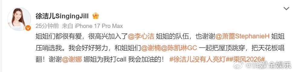 选人环节有诸多考量,徐洁儿通透回应,格局真的绝了👏徐洁儿回应没有人亮灯乘风2026
