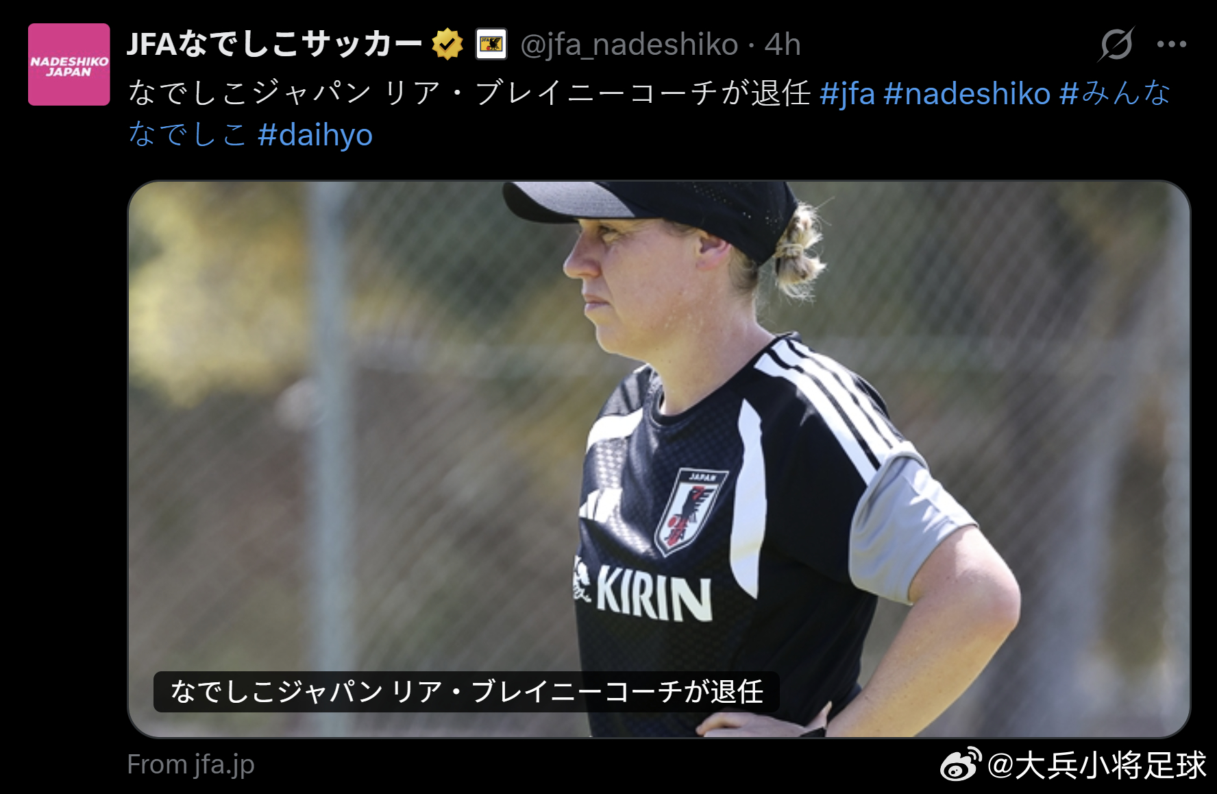 nadeshiko japan日本女子代表 教练利娅·布莱尼(Leah Blayney)退任。