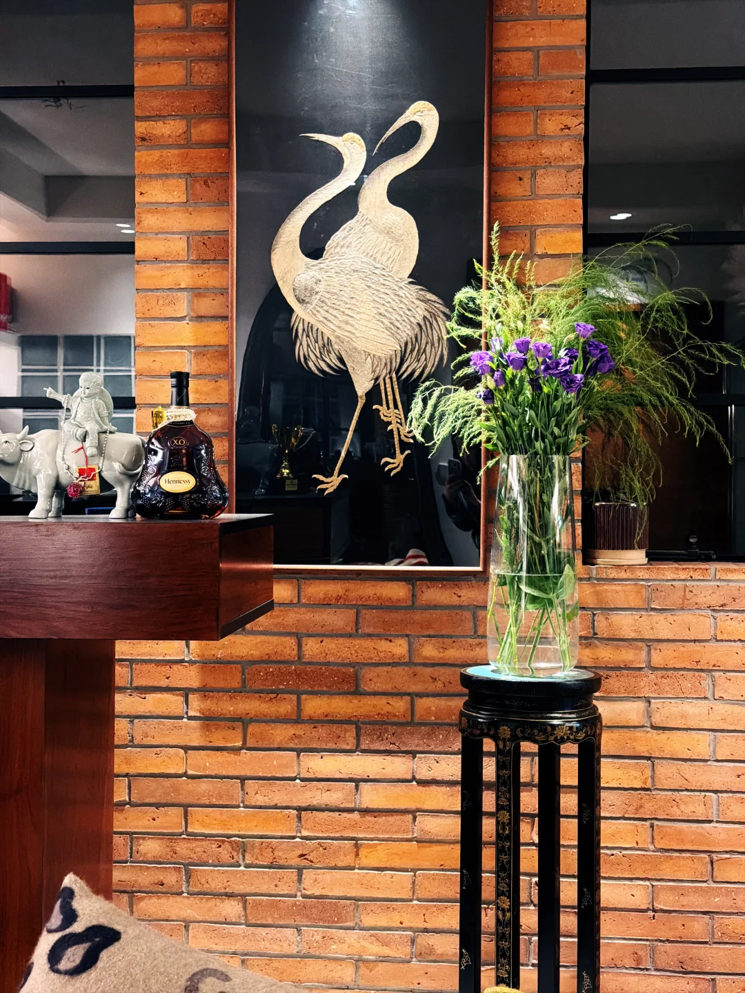 插了紫色的花,忘记叫什么了。 好喜欢,一瞬间有恋爱的感觉。