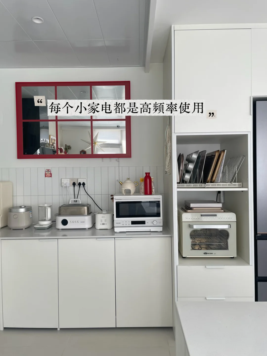 洗碗机,微波炉,烤箱,烧水壶,咖啡机,电饭煲,蒸锅,破壁机,厨师机,连扫地机器人都安在了岛台下面~