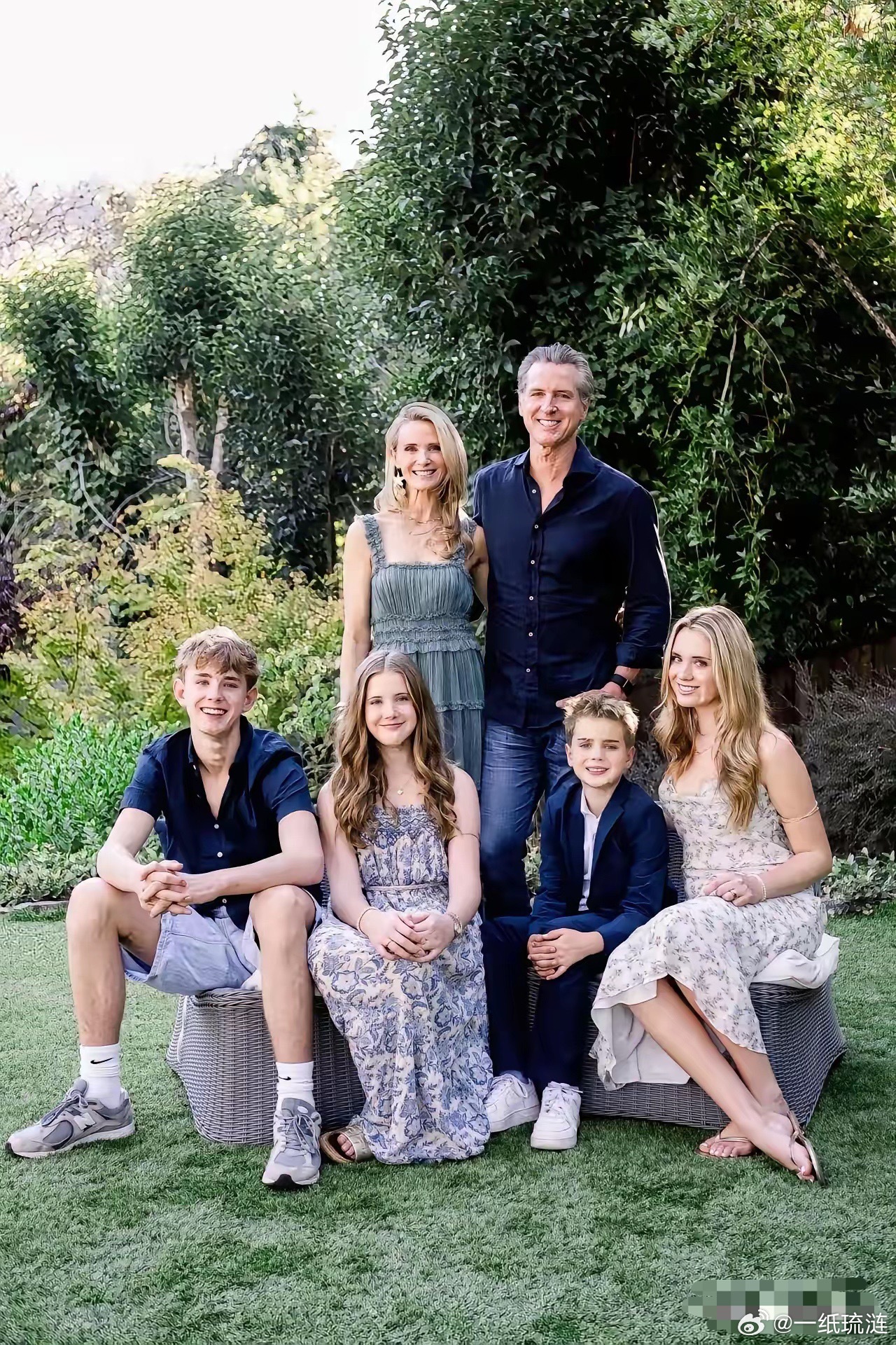 这是加州州长纽森的全家福,生育有两个女儿和两个儿子,可以说是家庭幸福。纽森长得很帅,夫人也很漂亮,因此儿女们颜值都很高,真让人羡慕。