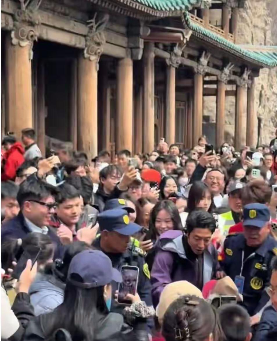 撒贝宁大同旅游被粉丝包围,导游:其妻子李白中文讲得很好,一家人观赏了悬空寺崖壁上