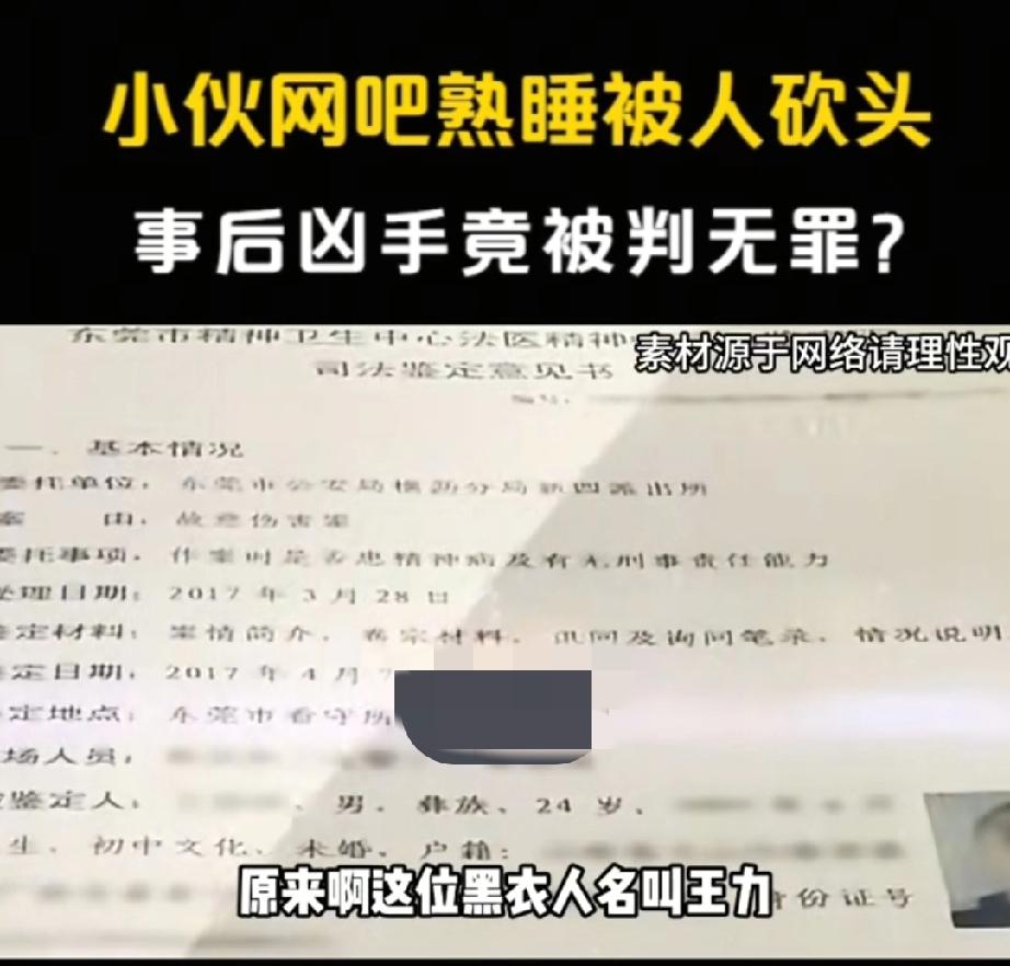 网吧八刀砍人案后续。 2017年3月18日凌晨,广东东莞横沥镇的一家网吧发生了一起令人胆寒的“网吧八刀砍人案”。当时,受害人小吴因上网太累,仰倒在椅子上睡着了。这时,一个身穿黑衣、头戴鸭舌帽还戴着口罩的男子闯入网吧,抽出菜刀对着小吴的颈部与头部连砍八刀。小吴最终因失血过多,抢救无效死亡。 后来犯罪嫌疑人王某被抓,他是云南人,有精神病史。经鉴定,案发时他处于精神分裂症发病期,丧失对作案行为的辨认和控制能力,被评定为无刑事责任能力。这案子真是让人唏嘘,也给社会敲响了关注精神疾病患者管理的警钟。 少年砍人事件