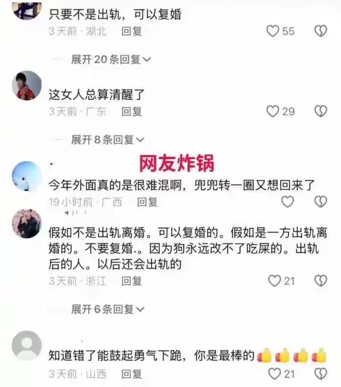 这一幕被镜头记录,刺痛了多少人的心。女子白衣短裙,风韵犹存,哭得梨花带雨;前夫高大沉稳,却面色冰冷。她跪着说“没人要我了”,他沉默后只回应:“别再妄想。”没有怒吼,没有指责,只有彻底失望后的决绝。网友几乎一边倒支持前夫:早知今日,何必当初?