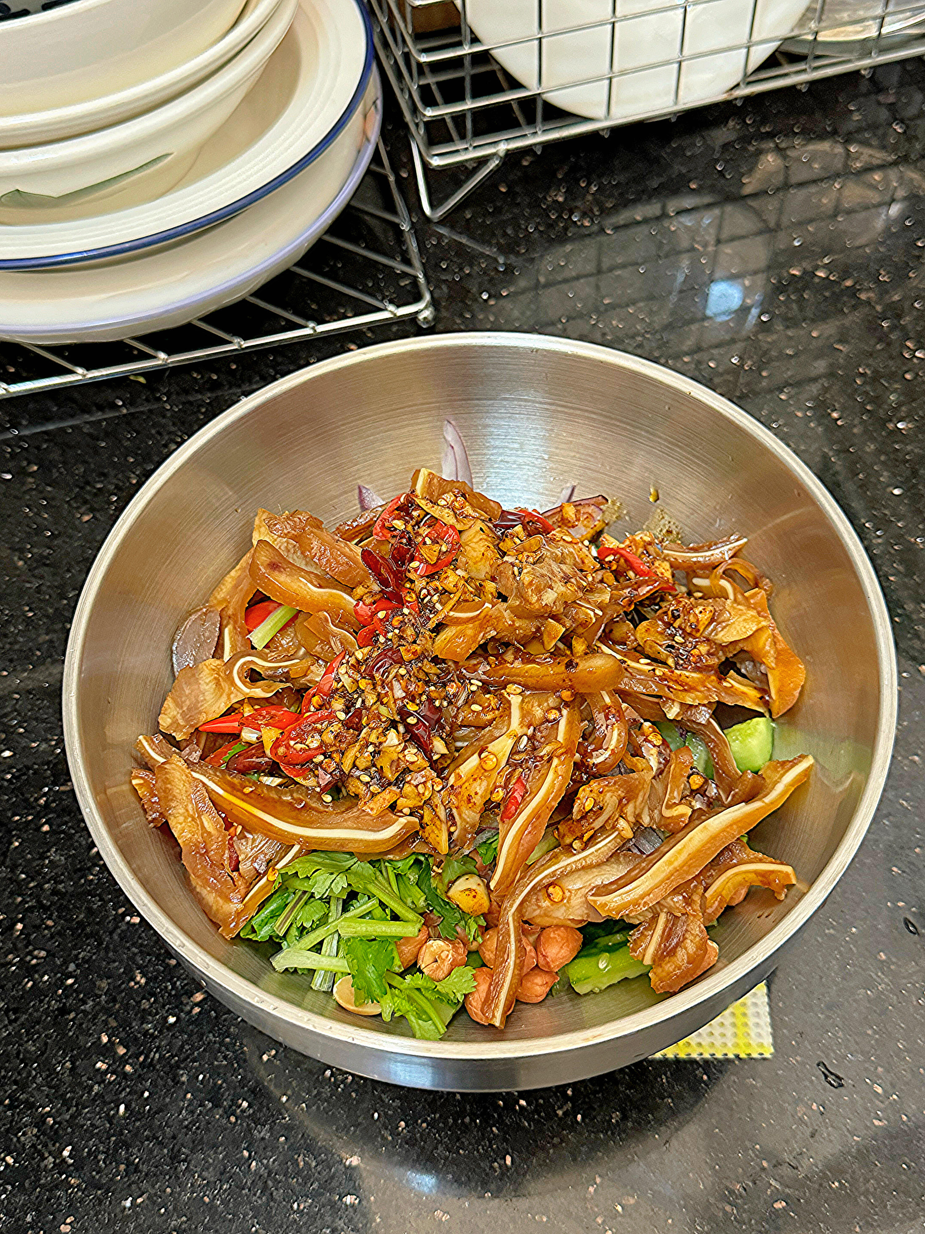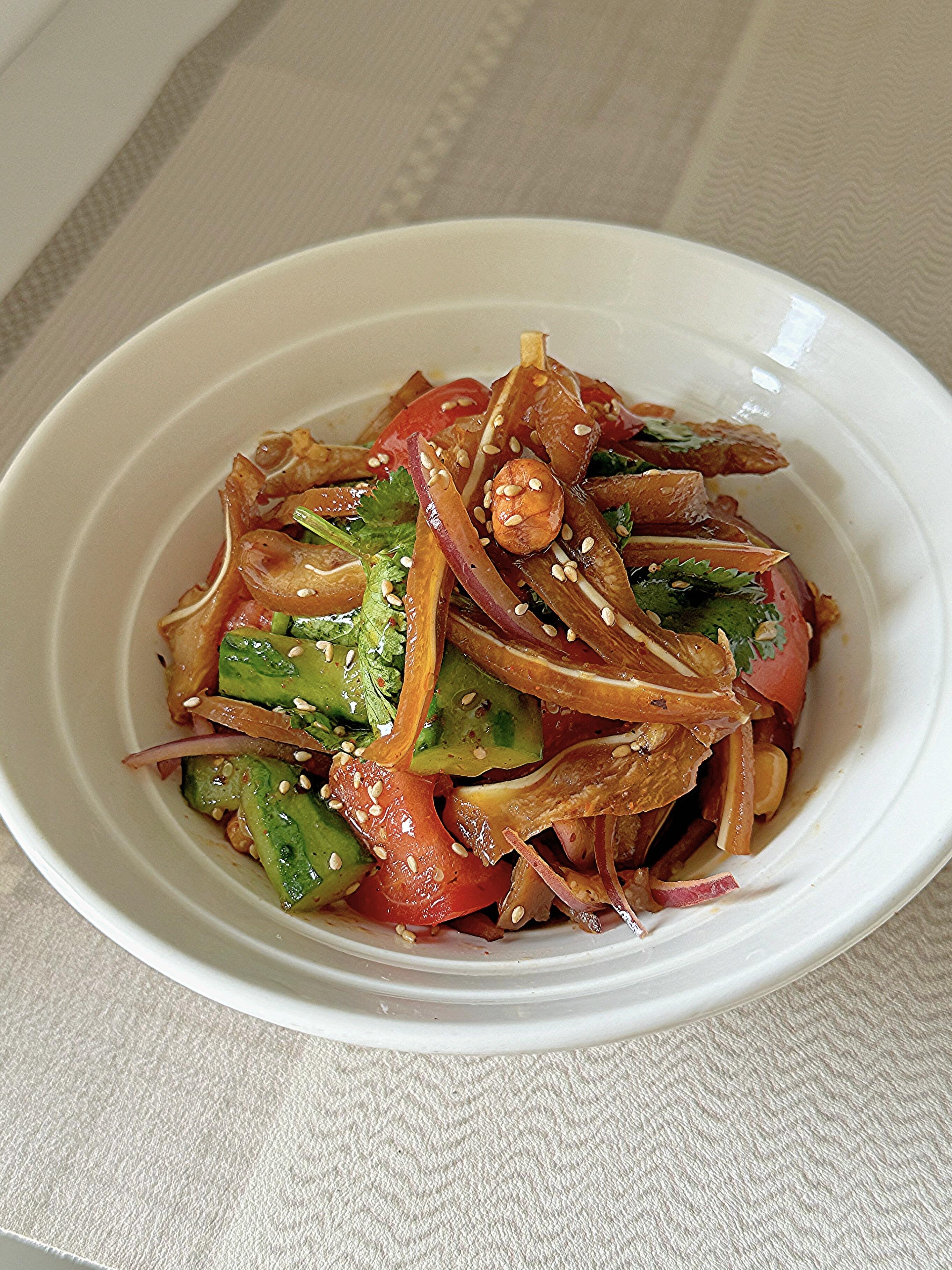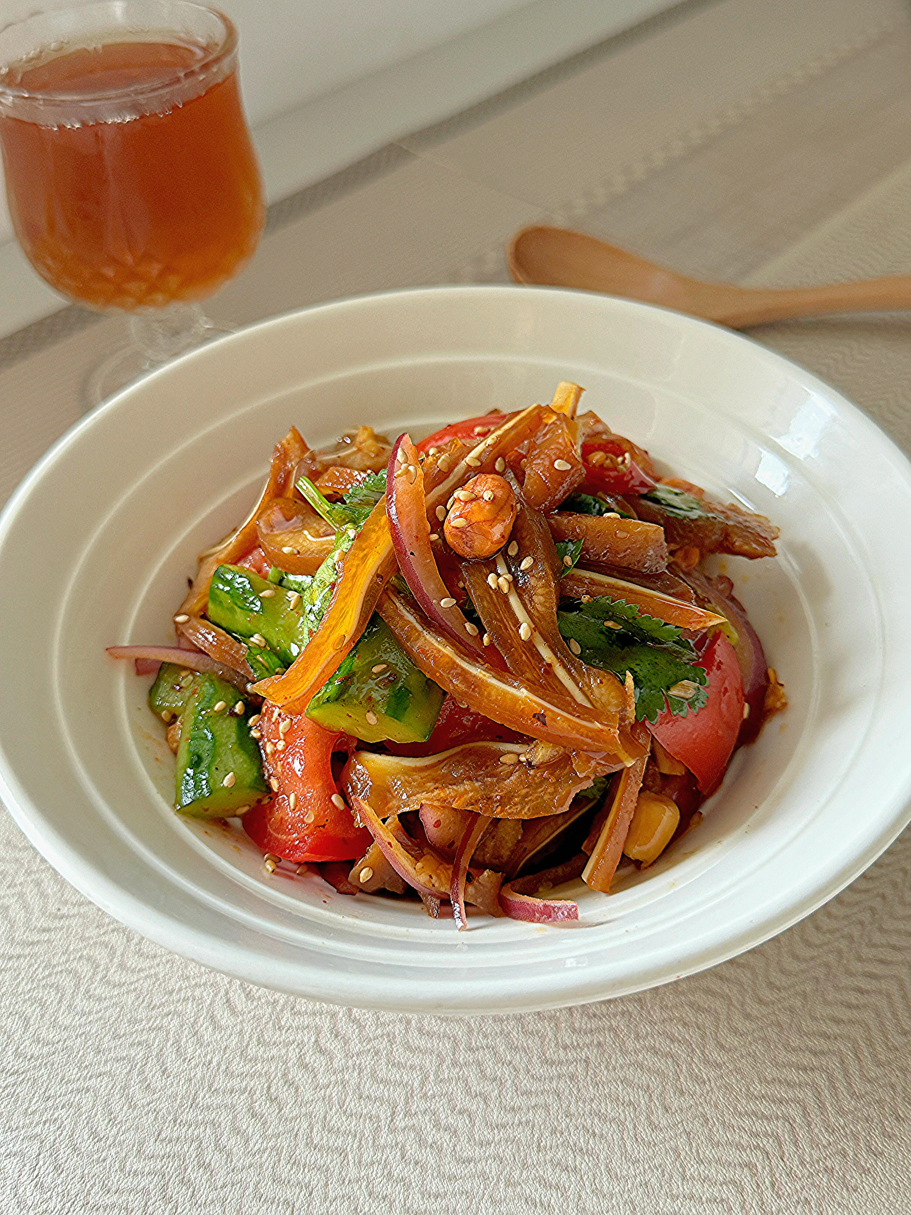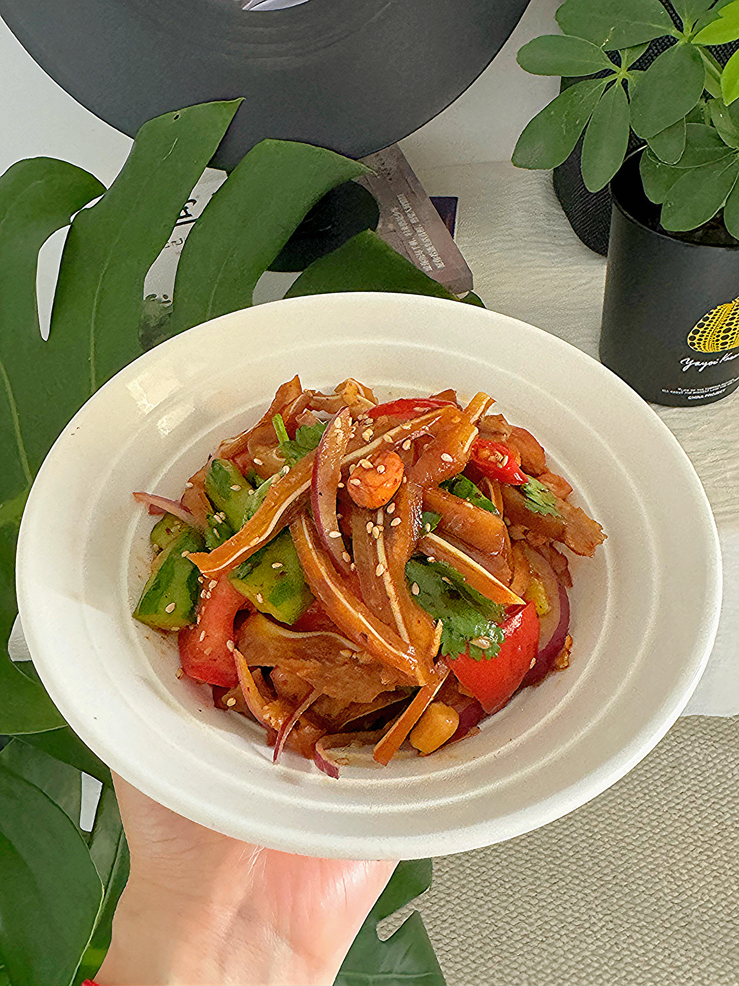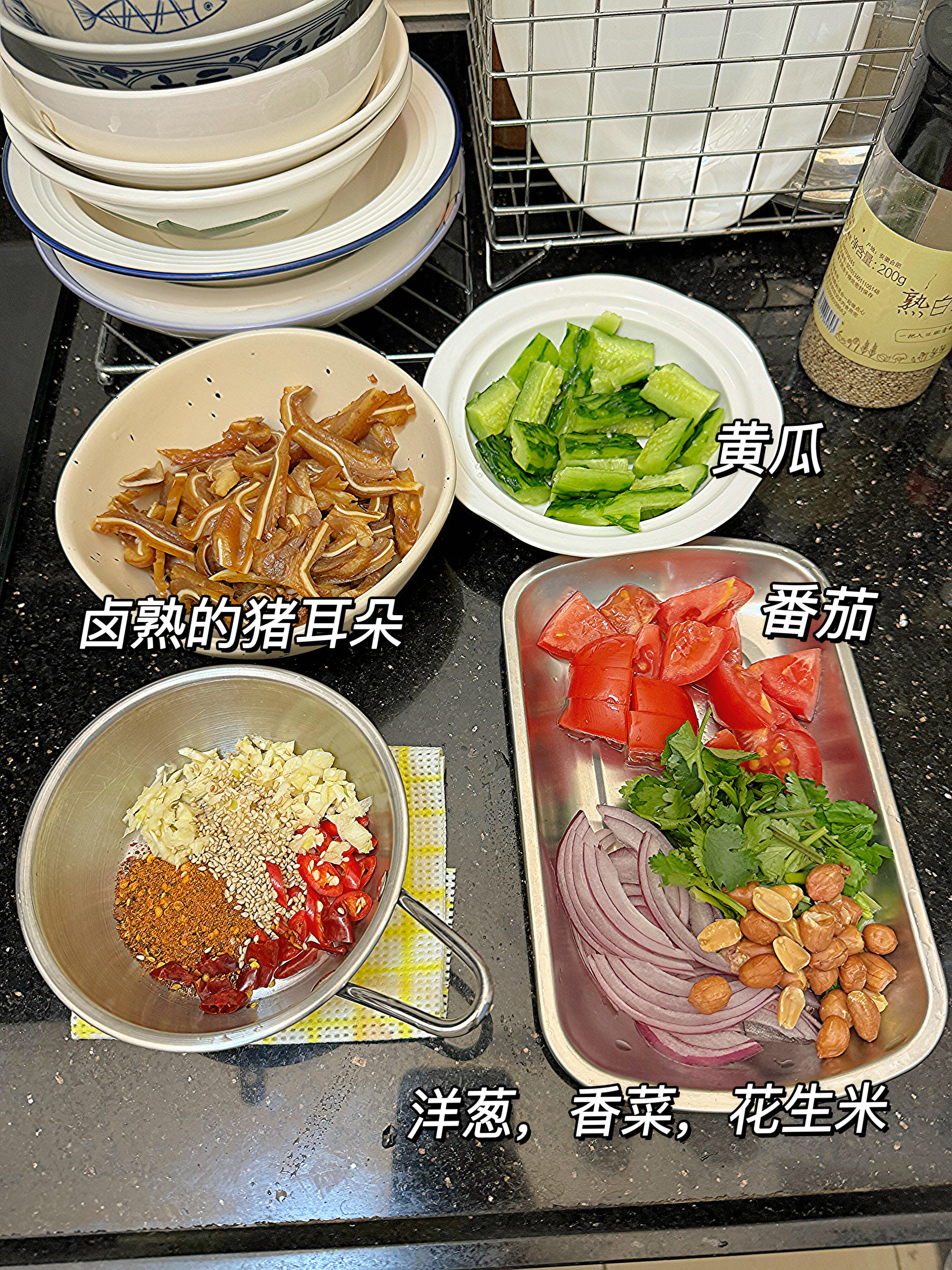 封神下酒菜🍻5分钟搞定凉拌猪耳,酸辣脆爽停不下来 家人们谁懂啊!假期最治愈的事,就是和朋友围坐一起,炫着凉拌猪耳喝小酒🍻 真心求你们和我做朋友!我天天给你们做这种神仙下酒菜,好吃到跺脚👏🥳 假期给朋友做了这道凉拌猪耳,直接收获一致好评,酸辣脆爽,一口一个,吃到停不下来,妥妥的硬核下酒菜! 重点是巨省事!不用复杂操作,5分钟就能搞定,新手零失败,不用费时间开火,懒人也能轻松拿捏~ 话不多说,做法直接分享给大家,赶紧收藏起来,下次和朋友小聚安排上! 🥒🥒 准备食材(随手就能凑齐,不用复杂采购): 卤熟的猪耳朵、黄瓜、番茄、洋葱、香菜、花生米 🥣🥣 灵魂酱汁(决定口感,记好比例不踩雷): 准备蒜末、干辣椒、小米辣、1勺辣椒面、芝麻,泼入滚烫的热油激出香味,再加入1勺生抽、1勺醋、1勺花椒油、1小勺糖、少许盐、味精,搅拌均匀备用。 🥒🥒 简单做法,零失败: 1. 先取黄瓜,撒少许盐和糖,抓匀腌一会儿,给黄瓜腌个底味,吃起来更脆爽入味。 2. 把卤好的猪耳朵切好,黄瓜、番茄、洋葱处理好,和香菜、花生米一起,全部放进一个大碗里,倒入调好的灵魂酱汁,充分搅拌均匀,让每样食材都裹满酱汁就可以啦! 🩵 新手小tips: 嫌麻烦的宝子,猪耳朵可以直接去熟食店买现成的,回来简单切一切、拌一拌,几分钟就能上桌,省时又省心,味道一点不打折~ 做好的凉拌猪耳,猪耳脆嫩有嚼劲,黄瓜清爽解腻,裹满酸辣酱汁,再配上香脆的花生米,一口下去超满足🍻 不管是当下酒菜,还是当凉拌菜,都巨合适,赶紧动手试试!
