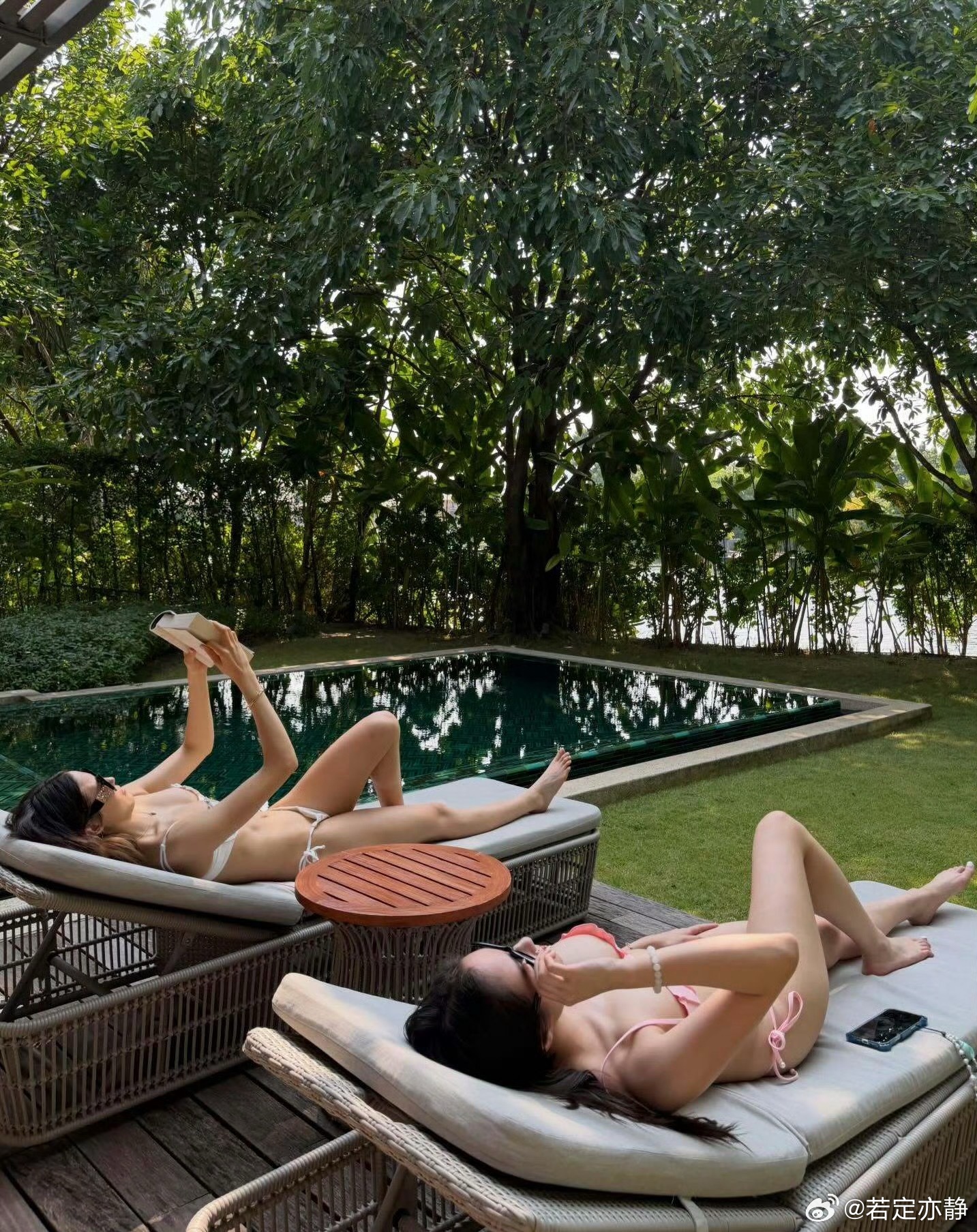 谷爱凌何超欣比基尼照2026年4月初,谷爱凌在社交平台发布与何超欣在泰国顶级疗养中心RAKxa的度假合照。照片中,谷爱凌身着白色比基尼,凭借常年训练塑造的紧实腰腹和清晰马甲线,展现出充满力量感的健康美;何超欣则身穿粉色泳装,气质从容舒展,两人在山水环绕的自然环境中享受日光浴、骑单车等活动,传递出自信松弛的度假氛围。其行程主打慢节奏疗养,包含SPA、阅读等项目,体现对健康管理的重视。谷爱凌何超欣比基尼照