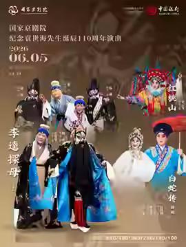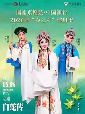 京剧《白蛇传》演出: 一、4月18日晚 北京市·北京人民剧场 国家京剧院“这里有戏”京剧《白蛇传》 (游湖 结亲 说许 惊变 盗草 观潮 飞桨 索夫 水斗 断桥) 白素贞……朱 虹 许 仙……陈旭之 小 青……戴忠宇 法 海……胡 滨 鹤 童……蒋骑泽 鹿 童……郑高陆 伽 蓝……卫芃宇 小沙弥……王雪松 艄 翁……王雪松 司 鼓:王晓瀚 操 琴:魏 巍 二、4月25日下午 天津市·广东会馆 天津京剧院 京剧《白蛇传》(盗草)《钟馗嫁妹》 《白蛇传》(盗草) 白素贞——闫文倩 饰 《钟馗嫁妹》 钟 馗——黄齐峰 饰 三、4月26日下午 北京市·顺义大剧院 北京京剧院 京剧《白蛇传》 北京京剧院三团 尤雅莹主演 四、5月4日晚 北京市·梅兰芳大剧院-大剧场 国家京剧院·中国银行2026年“春之声”演出季 京剧《白蛇传》 白素贞-----郭 霄 许 仙------郝仕鹏 小 青------张慧鑫 法 海------杨 威 五、6月5日晚 北京市·梅兰芳大剧院-大剧场 国家京剧院纪念袁世海先生诞辰110周年演出《红桃山》《白蛇传·游湖》《李逵探母》 《红桃山》 张月娥------宋云飞 林 冲------曲径达 关 胜------朱静论 花 荣------赵宏生 《白蛇传·游湖》 白素贞------付 佳 许 仙------宋小川 小 青------白玮琛 艄 翁------耿钪斐 《李逵探母》(全本) 李 逵------杨 赤(特邀) 胡 滨 杨 威 李 母------袁慧琴 张 兰 杨 杨 六、6月19日晚 天津市·中华剧院 天津市青年京剧团 京剧《金山寺·断桥·雷峰塔》-第四届中华戏曲精品邀请展 白素贞—赵秀君 许 仙—康 健 小 青—闫 巍/刘山山 法 海—张 桐 许 氏—孙丽英 许仕林—姬 鹏 伽 蓝—李艾春 金甲神—唐春园 龟 帅—李 鹤 蟹 将—陈建波 揭谛神—张金博 小和尚—孙雨生/魏永新 司 鼓:崔 洪 操 琴:朱建中 京二胡:孙文庆 司 笛:林子琪 ……