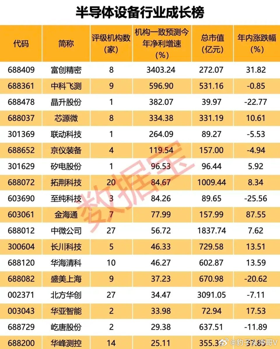最高暴涨87%!半导体设备成长榜出炉,3403%净利增速标