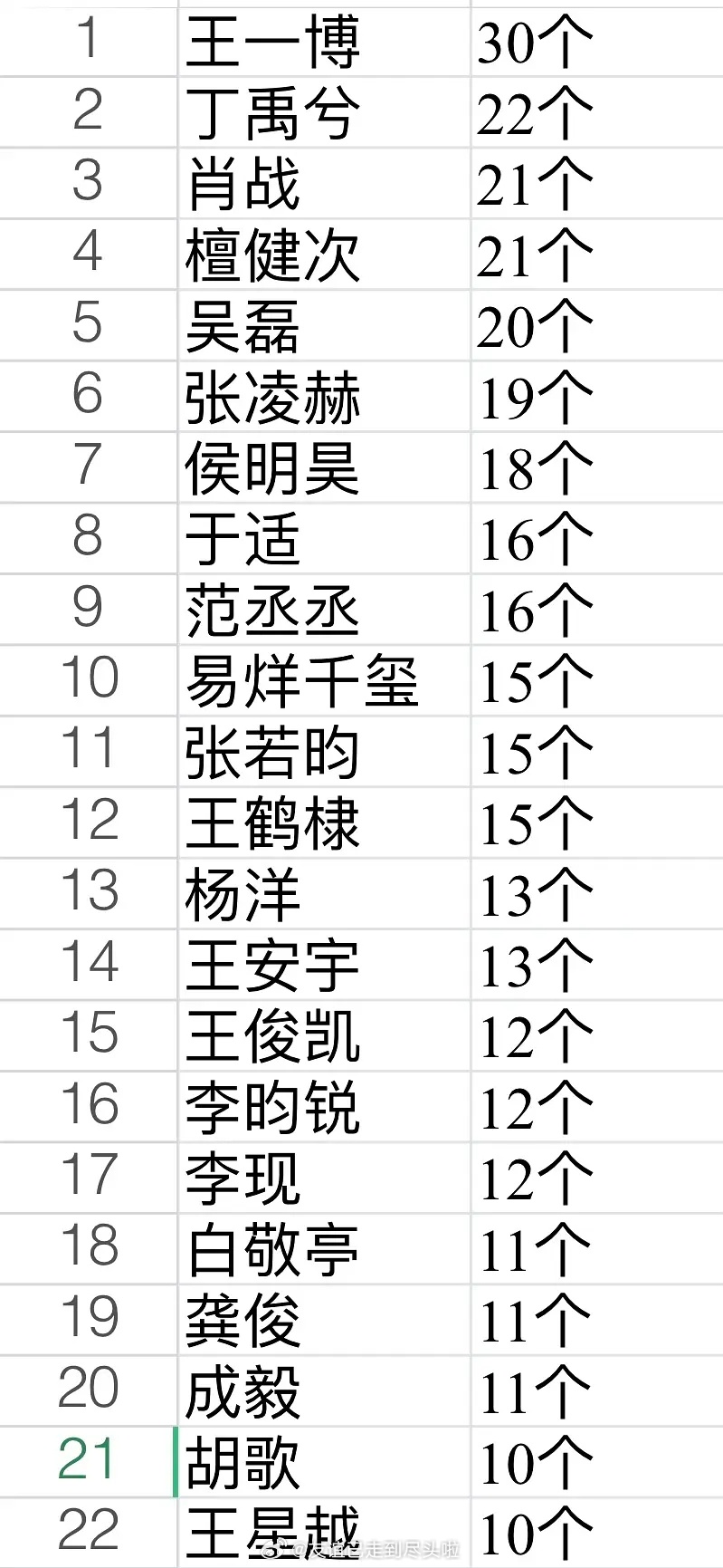 内娱男明星代言统计王一博、丁禹兮、肖战、檀健次、吴磊张凌赫、侯明昊、于适、范丞丞、易烊千玺张若昀、王鹤棣、杨洋、王安宇、王俊凯