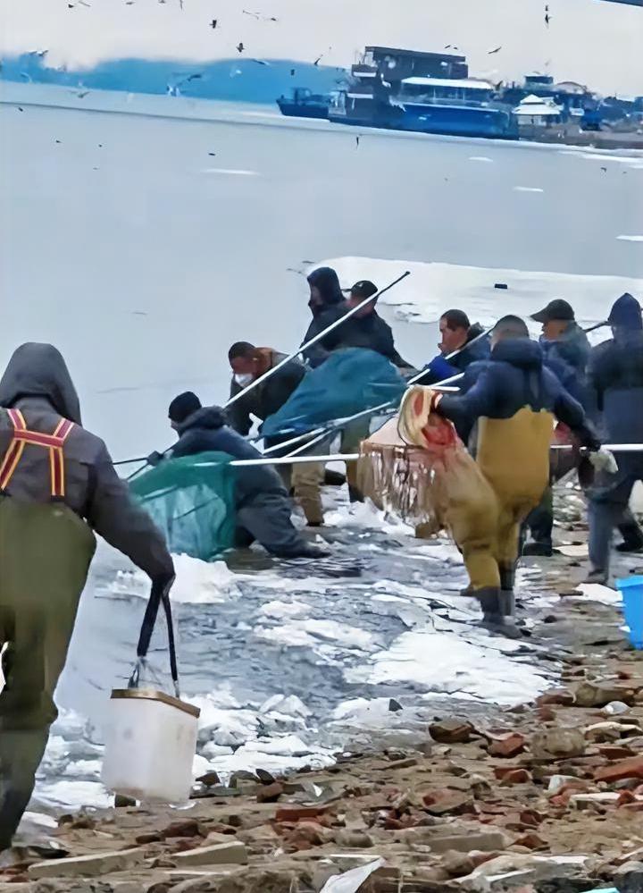 前脚放生,后脚捕捞大军入场,一群鱼在江里仅仅洗了个澡。 近期一网友在江边遇到一群人放生,满满的一车鱼,其中还夹杂着不少金鱼,活蹦乱跳的进了江。 结果这群人刚走没一会,等在不远处的捕捞大军立马冲上前来,有拿抄网的有撒网的,直接给这群鱼来了个“天罗地网”,估计这群鱼幸存者不多,基本都被捕捞上来了。 网友看得啧啧称奇,放生者竟然能和捕捞者衔接的如此紧密,只是让这群鱼有点猝不及防,仅仅在江里洗了个澡就又成了人类的盘中餐。 不过该说不说,放生者有点缺乏常识了,江水结冰刚化开,就直接把人工养殖的鱼丢进冷水中,即便是没人捕捞,估计成活的几率也不大。