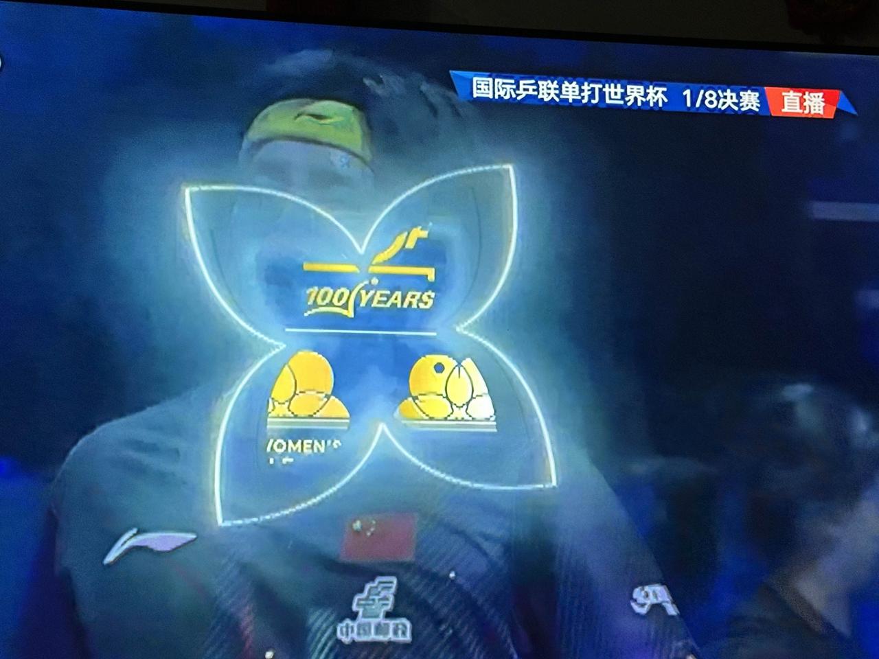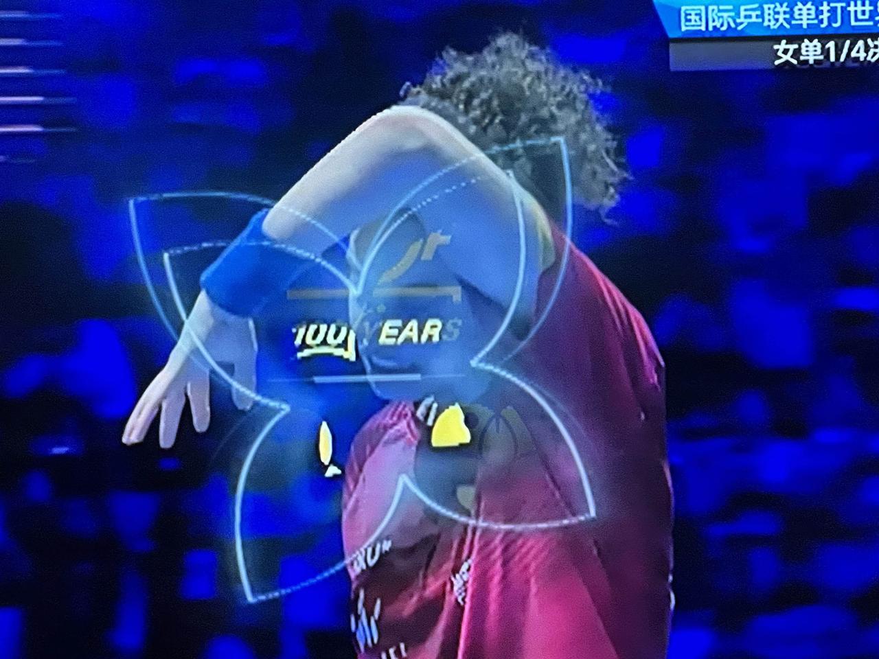 手机里舍不得删除的相片。 这段时间收看国际乒联世界杯电视直播,用手机拍了好多好多的相片,其中有三张相片很神奇: 王楚钦的八分之一决赛、非洲天才少女的四分之一决赛,我本来是想拍人像的,可是镜头不等我,瞬间闪现出赛事图标,这样就出现了人像与图标的混合体。 有些人想拍这种效果都拍不出来吧?真是踏破草鞋无处寻,得来全不费功夫!