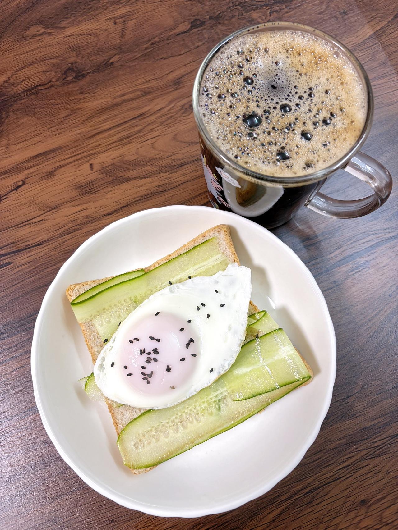 自律减脂健康餐,目标95斤,加油 今日体重:106.1斤⬆️2.1斤 今日减脂早餐:全麦面包+无油煎蛋+黄瓜+黑咖啡