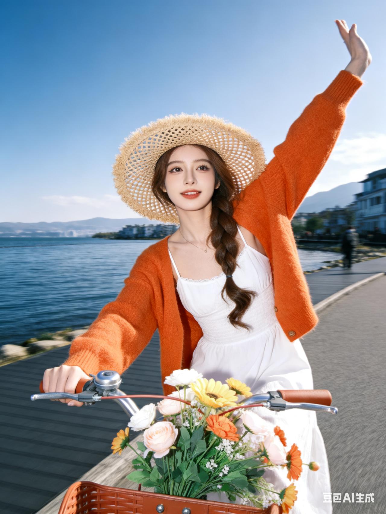 阳光明媚的海边,少女与花篮的甜美时光🌞🌸💃
