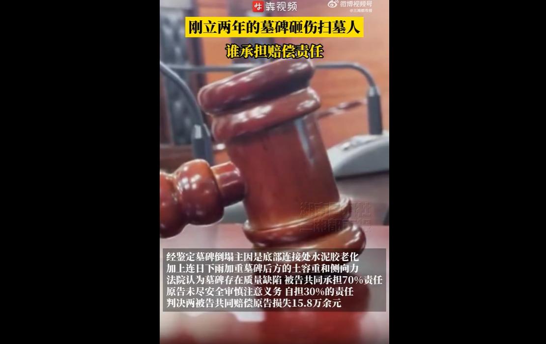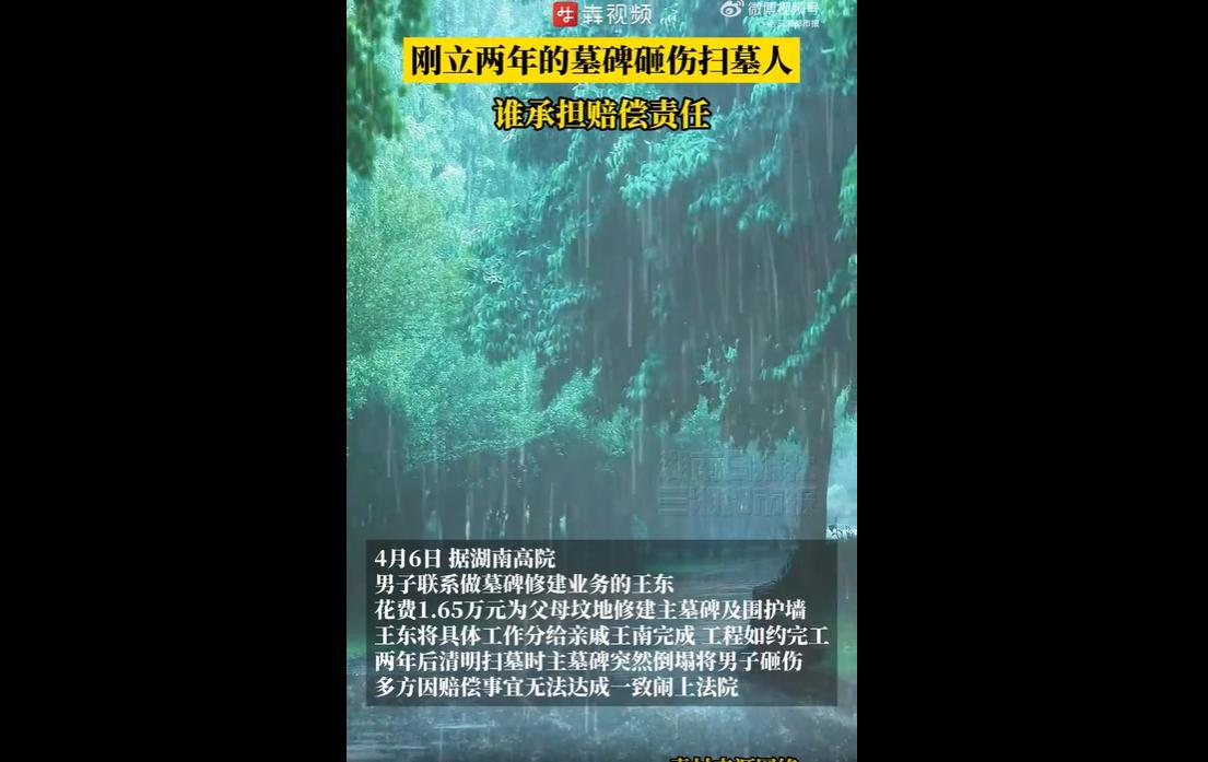 邵阳人刘鹏委托王东为父母坟地修建墓碑及围护墙,支付16500元后,王东交由王南施工。 两年后清明,刘鹏扫墓时墓碑因底部水泥胶老化缺失、连日下雨影响倒塌,致其十级伤残。 法院鉴定墓碑存在质量缺陷,酌定王东、王南承担70%责任,共同赔偿刘鹏15.8万余元,二审维持原判。 咱就是说,修墓碑这事儿,看似简单,实则关乎安全,毕竟是立在户外的东西,风吹日晒雨淋,质量不过关,迟早要出问题。 可这俩施工的,简直是敷衍到极致!鉴定结果一出来,真相大白:墓碑倒塌,主要是底部连接处水泥胶老化、缺失,再加上连日下雨加重负荷,说白了,就是施工偷工减料、敷衍了事,把刘鹏的孝心当成了“随便糊弄”的活儿。 最离谱的是,事发后王南只付了1万元医药费,还一副“我只有部分责任”的敷衍态度,合着你们施工偷工减料,把人砸成十级伤残,就想拿1万块钱打发?怕不是把别人的痛苦当成了儿戏! 刘鹏也是够倒霉,本来是去缅怀父母,结果被自家墓碑砸伤,不仅身体遭罪,还得费心费力打官司索赔,换谁都得气炸! 还好法院没惯着这俩施工方,经鉴定确认墓碑存在质量缺陷,直接酌定王东和王南承担70%的责任,赔偿15.8万余元,一审判决后俩被告还不服上诉,结果二审直接驳回,维持原判,主打一个“天道好轮回,敷衍必翻车”! 这俩施工方也算是搬起石头砸自己的脚,偷工减料省的那点钱,最后全赔进去还不够,纯属活该! 这起案件也给所有做工程、干施工的人提了个醒:别以为“敷衍了事”能蒙混过关,尤其是墓碑这种户外构筑物,质量就是底线,偷工减料、敷衍施工,迟早要为自己的不负责任买单。 你以为省了成本,殊不知,一旦出了事故,赔偿款比你省的钱多多了,还得赔上自己的信誉,纯属得不偿失。 同时也提醒大家,不管是修墓碑还是做其他工程,一定要找靠谱的施工方,签订明确的合同,明确质量标准和责任划分,避免后续出现纠纷。 刘鹏的遭遇虽然倒霉,但也给所有人敲响了警钟:任何时候,质量都不能打折扣,敷衍施工终会翻车,负责任才能避免麻烦,也才能真正对得起别人的信任和托付!