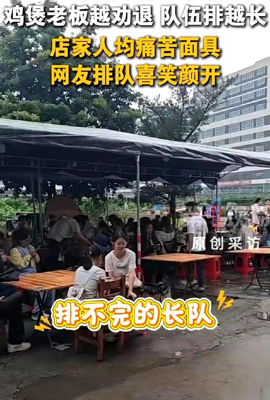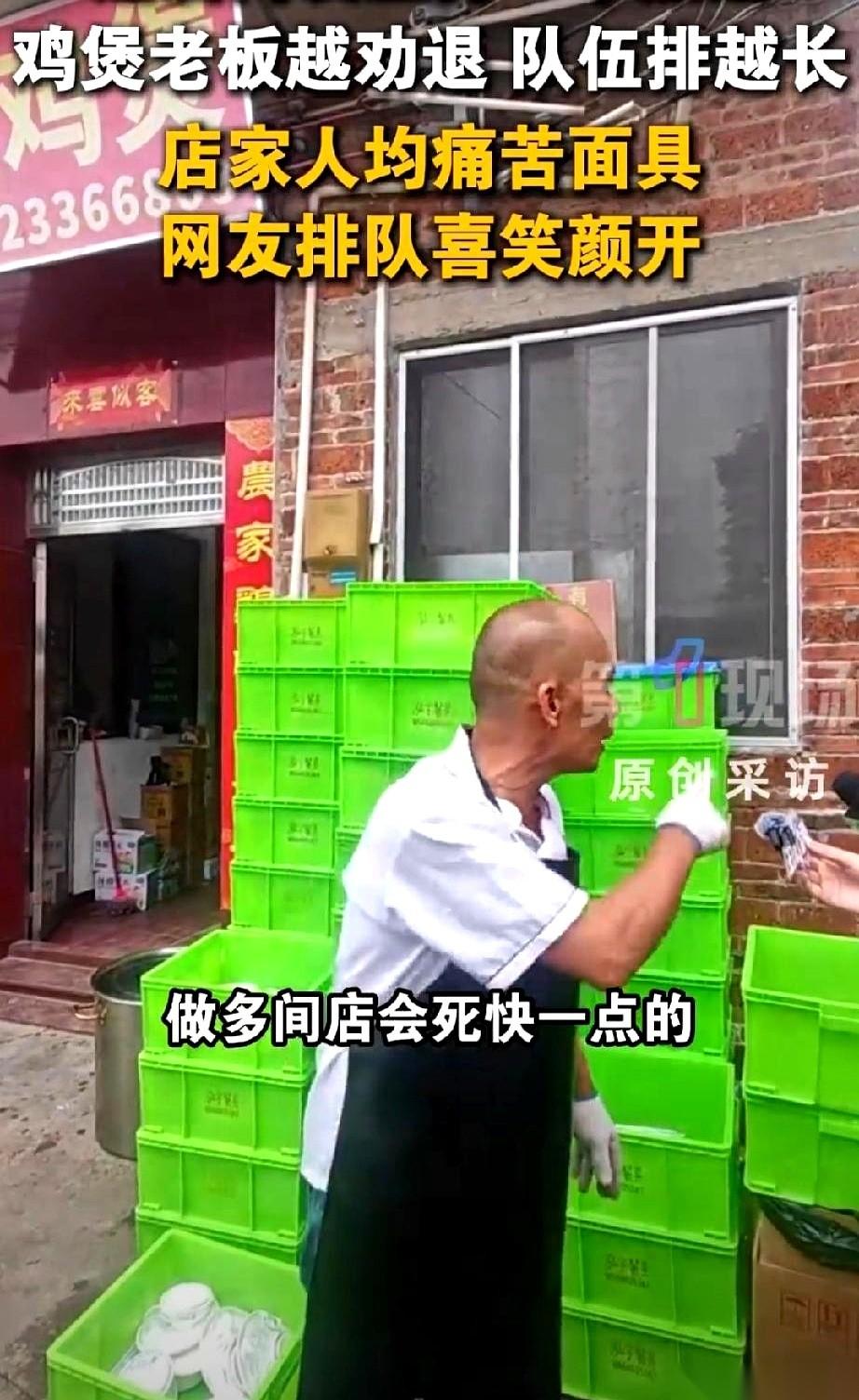 “别来了!求你们,别再来了!” 一声嘶吼,老板手里的勺子差点没握稳,不是怒吼,是绝望。这哪是生意,简直是“催命”! 几天前,顺德一家小鸡煲店,还是一天十桌的清闲地儿。老板每天收摊就能去K歌、散步,日子过得比谁都滋润。结果,一个叫刘雨鑫的网红,带着几千万粉丝一脚踏进来,镜头一晃,一句玩笑“你别把我搞太忙了”,瞬间点燃了整个网络。 炸了!评论区里,本地人哀嚎遍野:“快删掉,别动我的宝藏小店!”外地人则像被施了魔法:“你越这么说,我越要去!” 店门口,长龙一眼望不到头,连广西的都闻着味儿赶来。等两个小时,值得! 可对老板来说,这哪是“值得”,简直是“活埋”! 他累到腰疼,坐在板凳上不停叹气,对着镜头,直接就“自黑”:“我这冰冻鸡,要倒闭了!”甚至有网友说,老板为了劝退,自己申请小号去给差评。 在外打拼的儿子被紧急召回,就连儿媳妇娘家人也被拉来当壮丁。手?为了剁鸡、拔鸡毛,已经磨得发白! “少东家”刚到,记者就堵上门。问养鸡场的鸡还够吃多久?他随口一说:“按这速度,一两个月就吃完了!” 这话一出,网上又炸了锅,大家开始抢“绝版鸡”! 结果,没几个小时,少东家又赶紧跳出来,对着手机镜头,摆着手解释:“那是随口说的,鸡多的是!吃不完!别急,就是希望大家错峰来!” 这老板,究竟是真劝退,还是新型营销? 现在,店里只剩下“朝九晚五”的营业时间,中午三个小时,晚上三个小时。是老板真的累垮了,还是想把这股“反向营销”的火,烧得更旺?