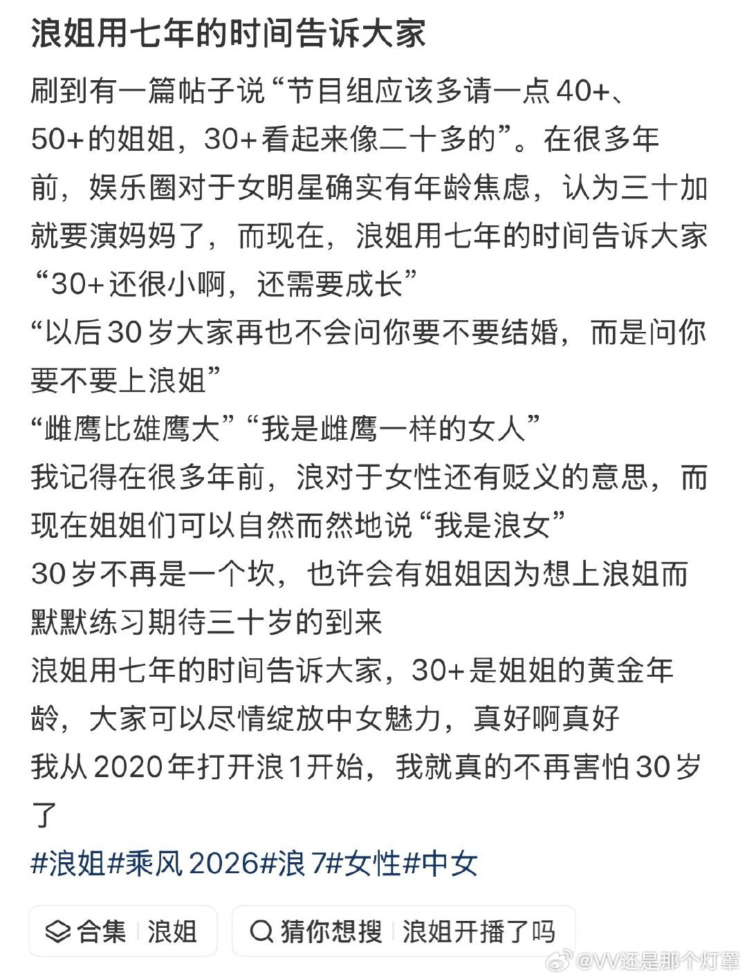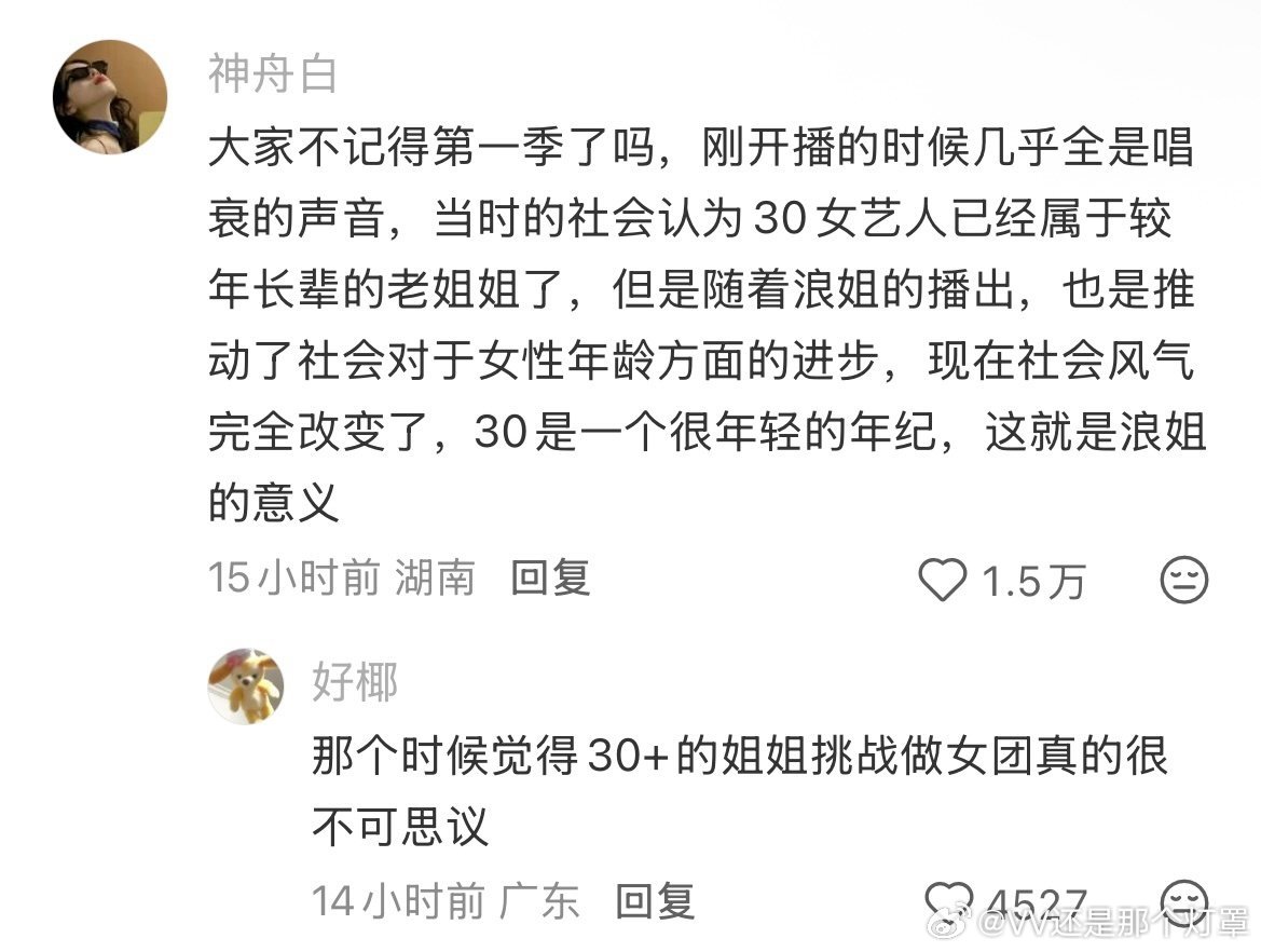 “你们都觉得30岁还太年轻了,这就是浪姐这个节目的意义。 ”