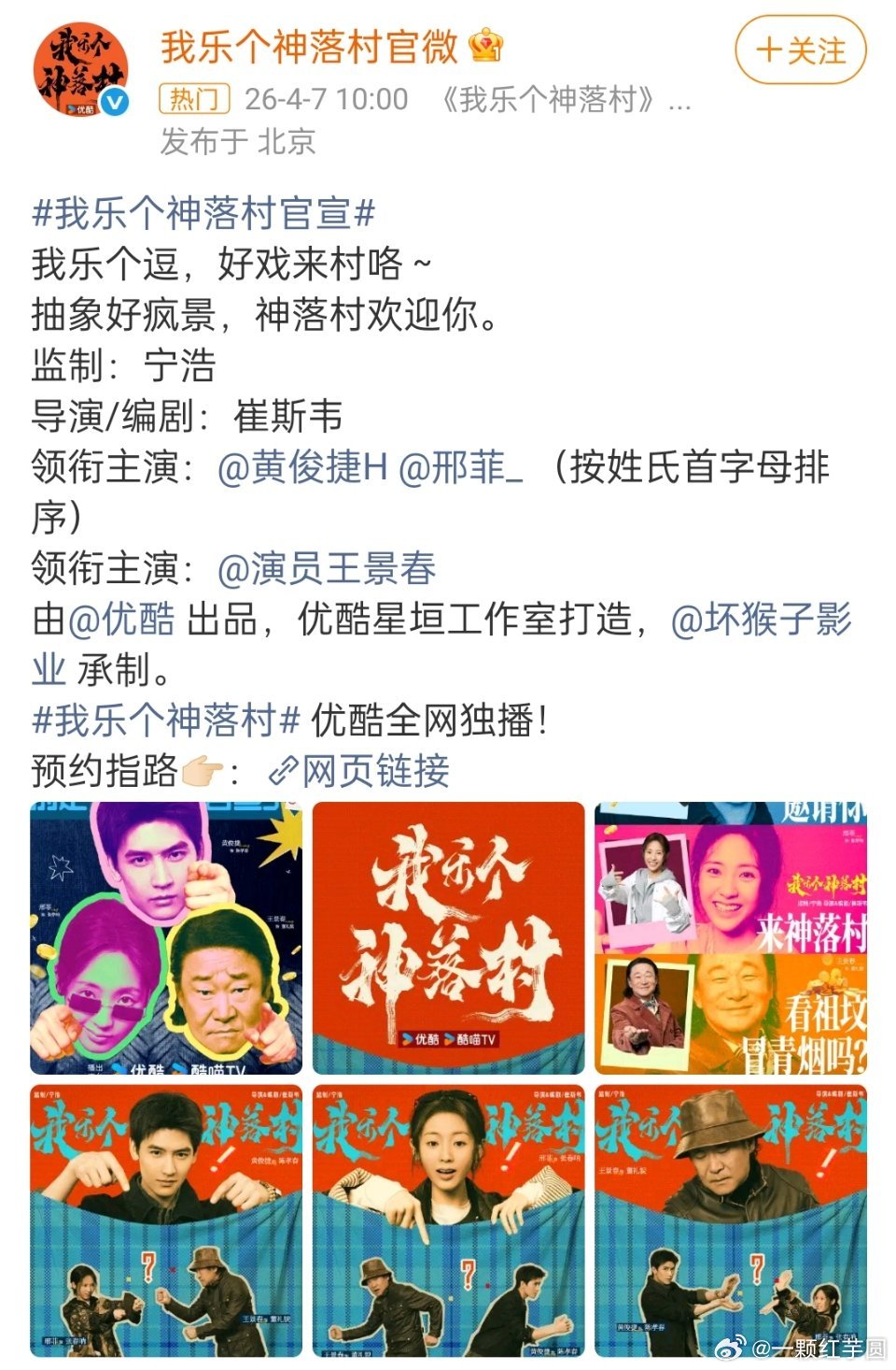 黄俊捷《我乐个神落村》官宣!班底和阵容都很让人安心!恭喜小黄同学🎉🎉
