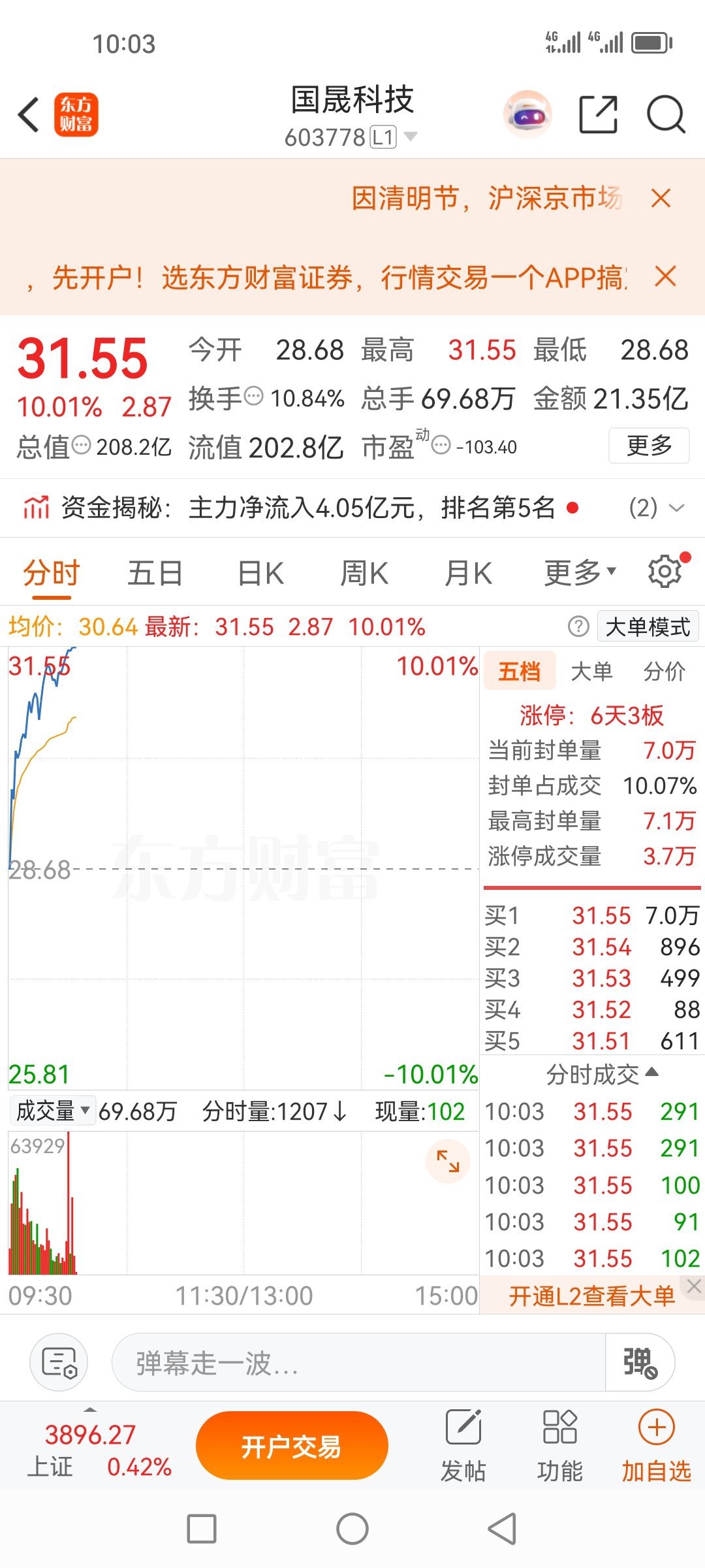 3月12日盘前分享的国晟科技603778,还在继续涨,这就是实力,这个就叫做专业