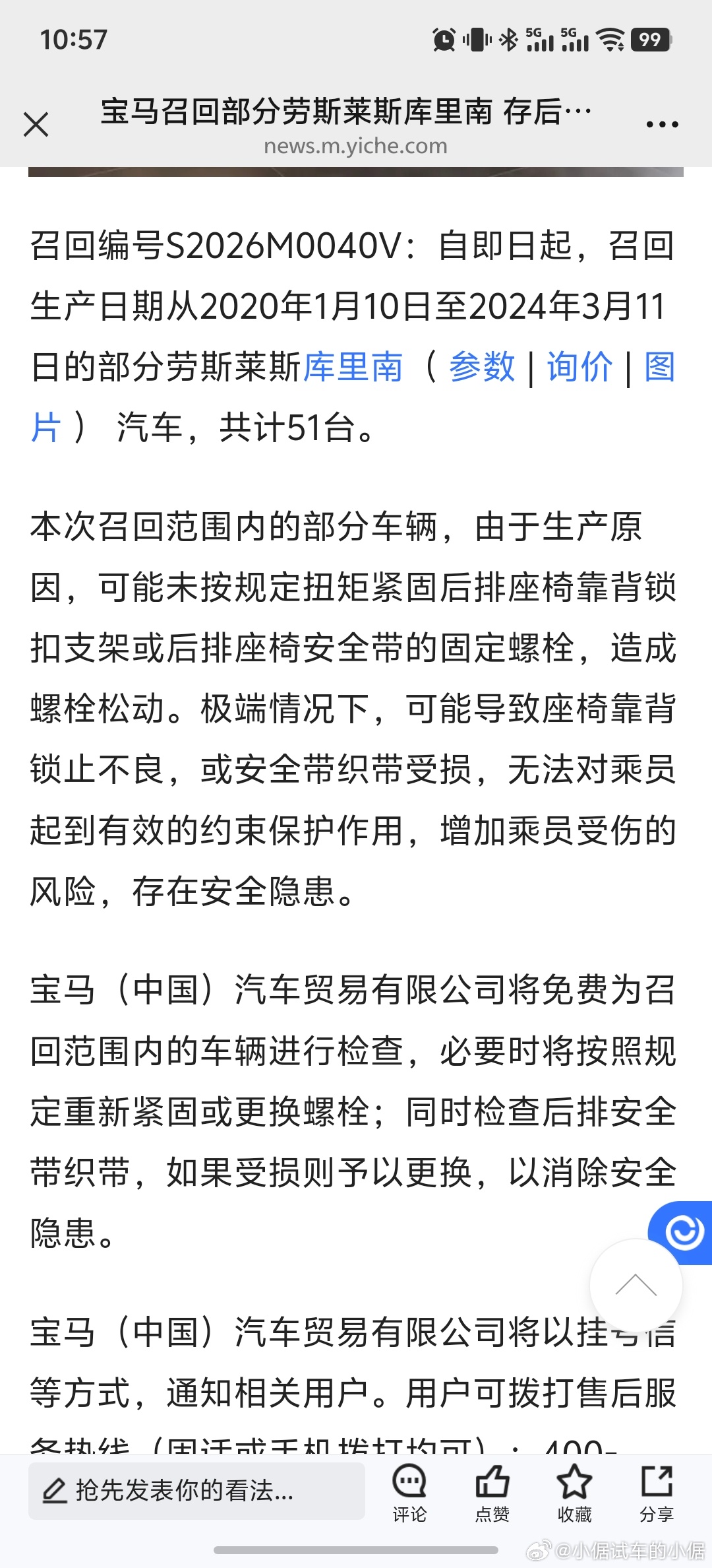 劳斯莱斯库里南,后排安全带,固定螺栓松动,要召回这质量不行,我不买了倨能聊大V聊